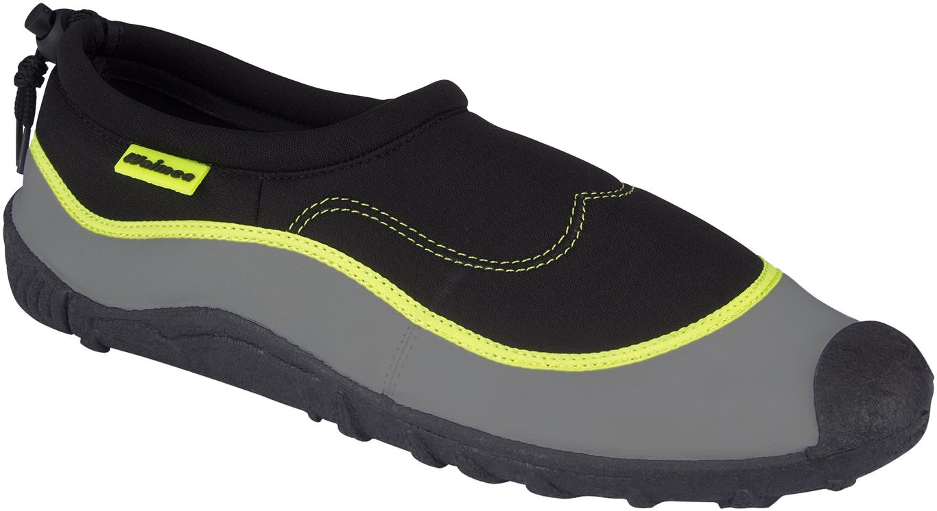 Dieser Flynn -Wasserschuh aus Wainea schützt unter anderem vor groben Sand, scharfen Steinen und Tieren auf dem Boden des Wassers. Da die Schuhe aus Neopren bestehen, verläuft das Wasser leicht vom Schuh und trocknet so schneller.
