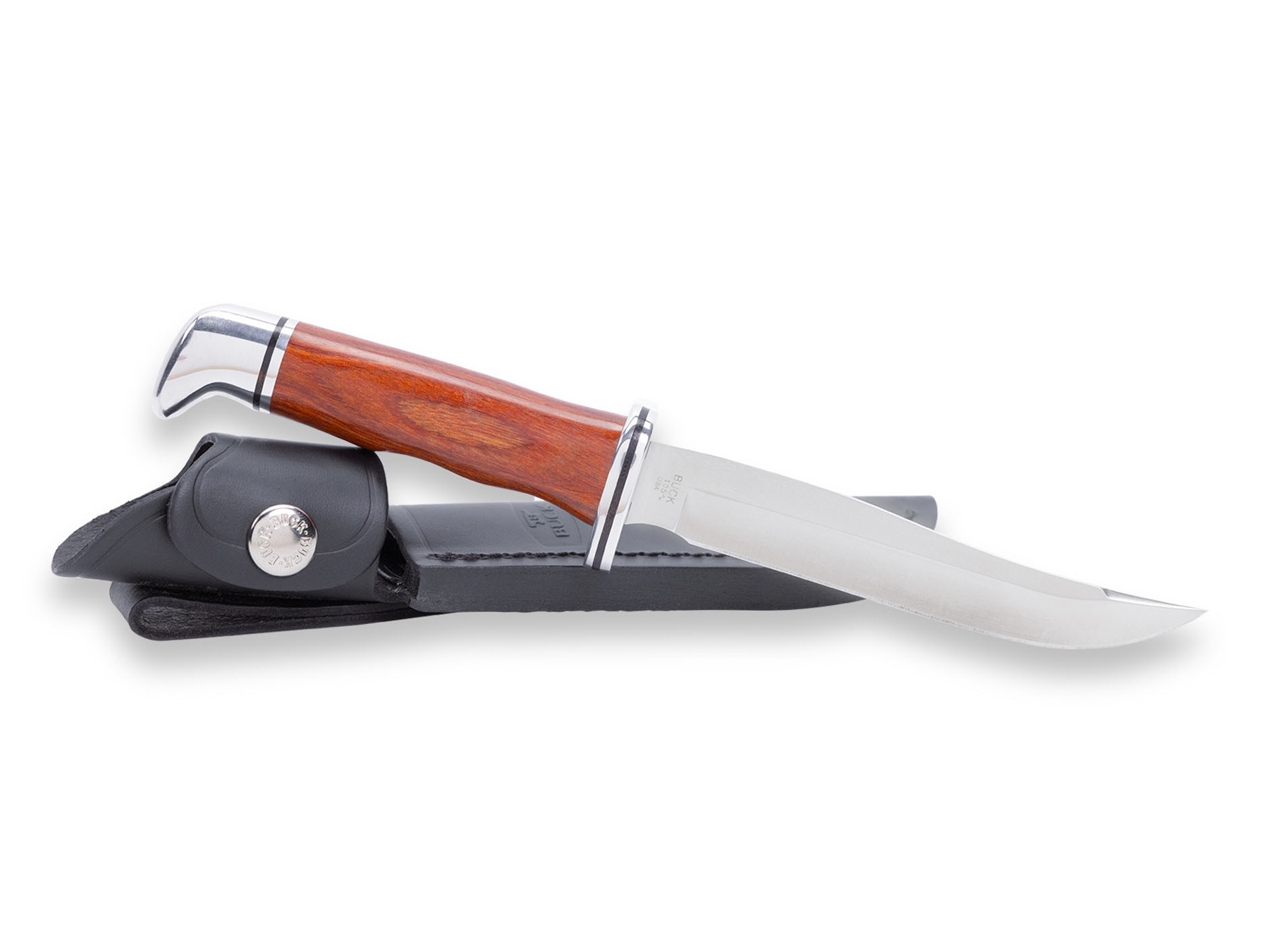 The Buck Pathfinder exemplifies classic craftsmanship and practical durability. With its reliable 420HC stainless steel blade, ergonomic cocobolo handle and included leather sheath, this knife is an indispensable partner for any outdoor enthusiast. It offers the perfect balance of compactness and functionality, and is built to last for generations.