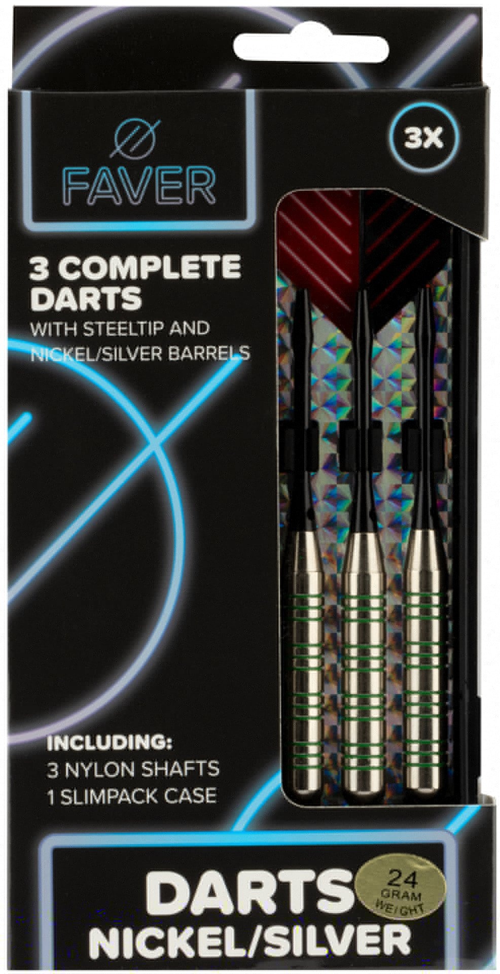 Faver® - Darts Nickel/Silber • METALIC • Rot/Schwarz