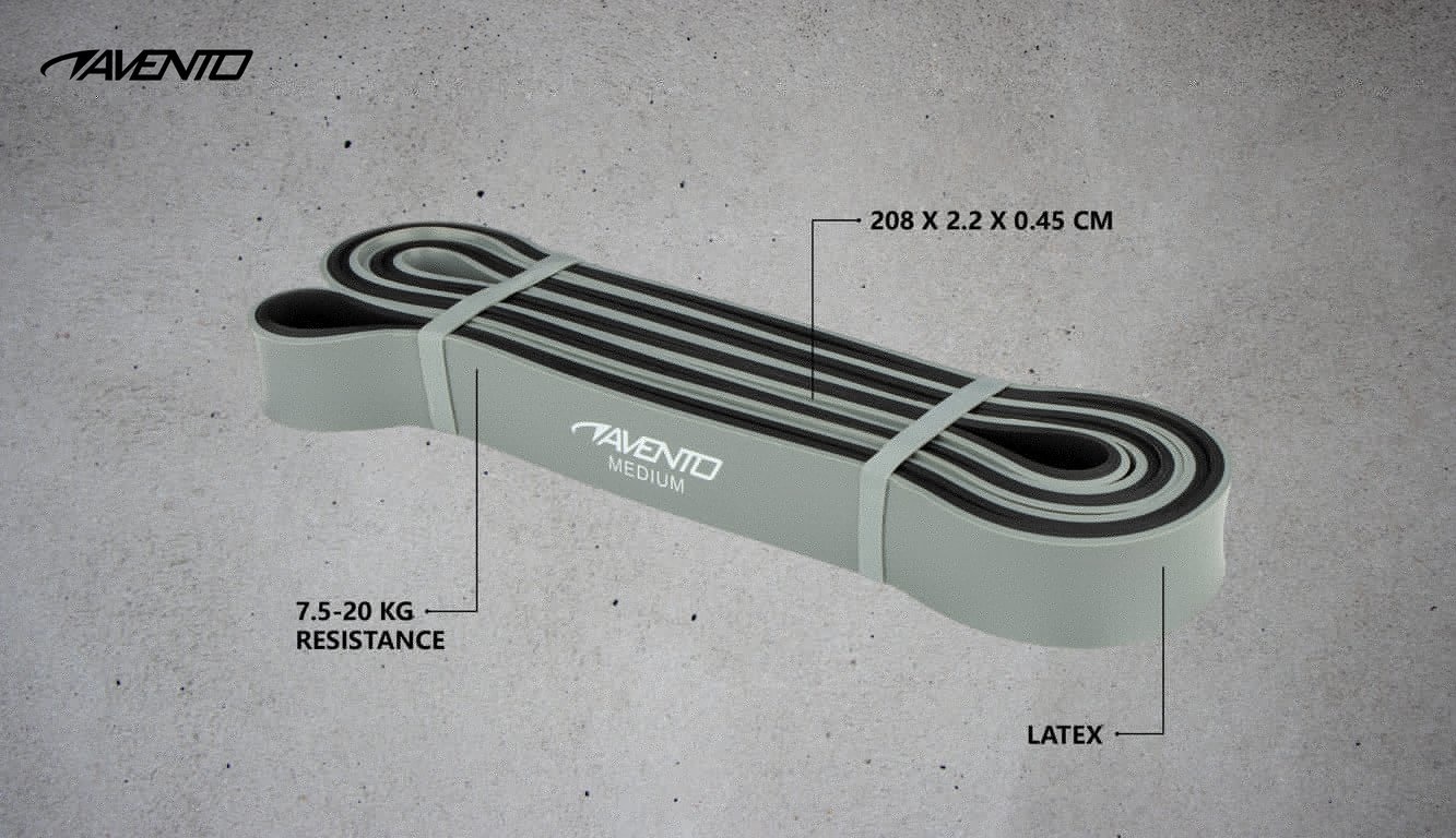 Avento® - Fitness Powerband Latex • MEDIUM • Grau/Schwarz