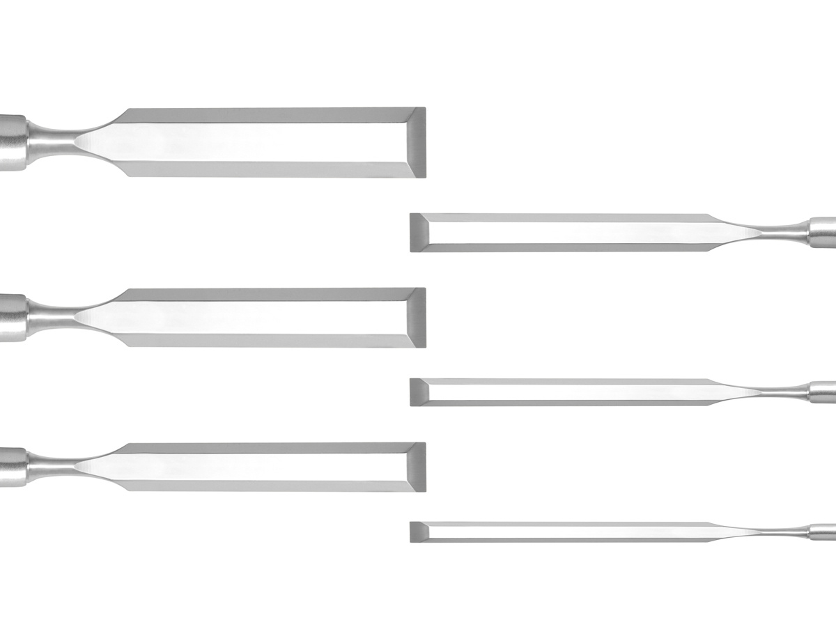 Die Meißel sind handgeschmiedet und der Holzgriff ist mit einer transparenten Lackschicht versehen, die das Holz vor äußeren Einflüssen schützt.