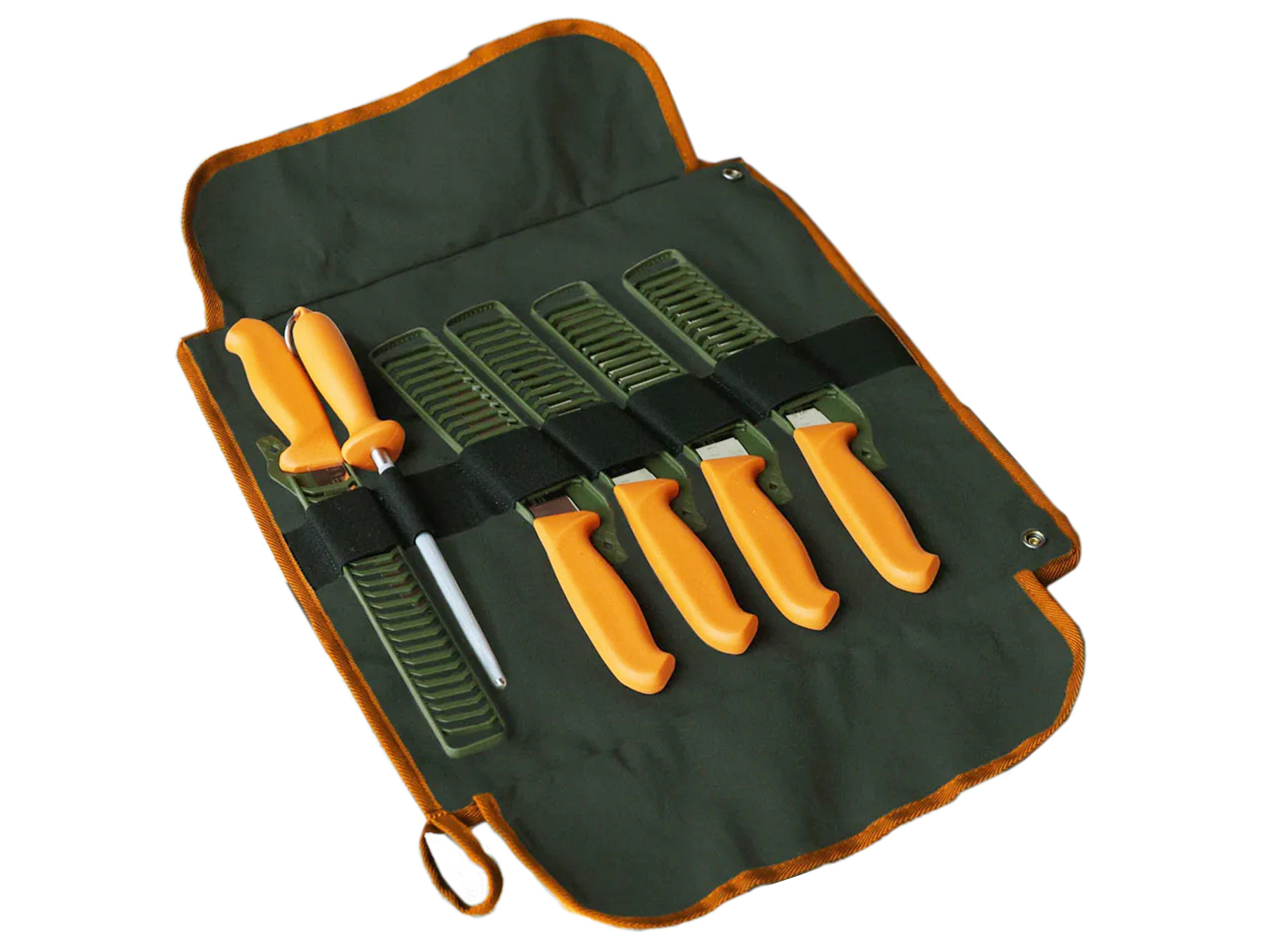 Die Morakniv Hunting Knife Roll ist die ideale Lösung für die sichere Aufbewahrung und den Transport Ihrer wertvollen Fleischerwerkzeuge. Dieser robuste Messerkoffer verfügt über sechs separate Fächer: fünf für Messer und eines für einen Wetzstahl. So bleiben Ihre Werkzeuge geordnet, geschützt und immer einsatzbereit.