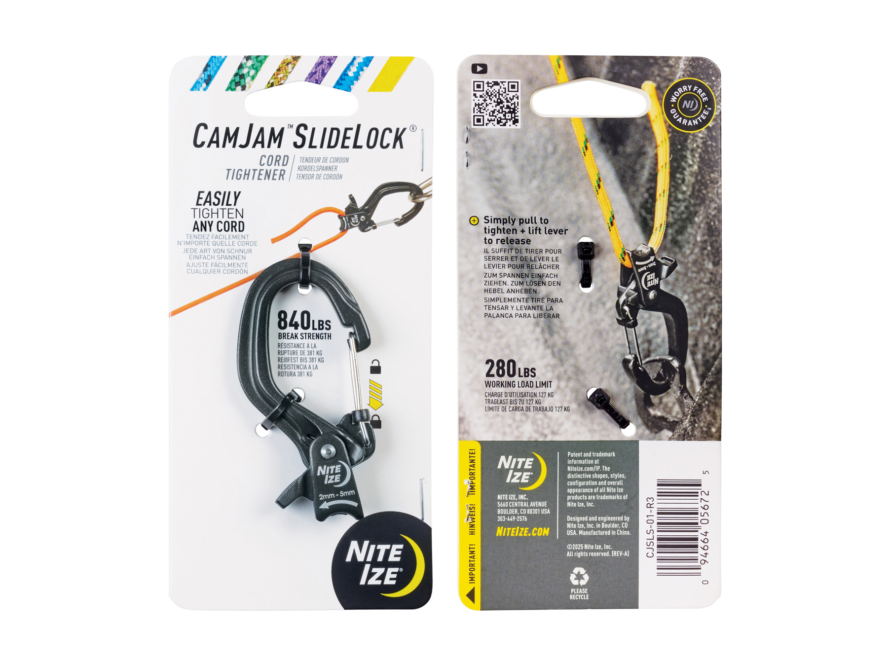 Nite Ize CamJam SlideLock Cord Tensioner Small - Verwicklungsfreies Spannen und Verbinden, einfach und verlässlich