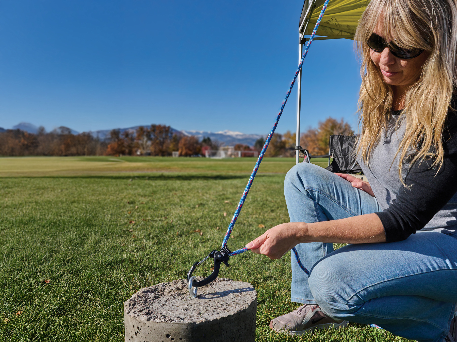 Der SlideLock-Karabiner kann an verschiedenen Verankerungspunkten wie D-Ringen, Dachgepäckträgern und Ösen schnell und zuverlässig befestigt und verriegelt werden. Dank des einfachen Zugmechanismus können Sie praktisch jede Art von Schnur oder Seil einführen und festziehen, um sowohl bei leichten als auch bei schweren Lasten eine sofortige Spannung zu erzeugen. Und wenn Sie die Last lösen wollen, heben Sie einfach den Hebel an, um die Spannung zu verringern und das Seil zu lösen.