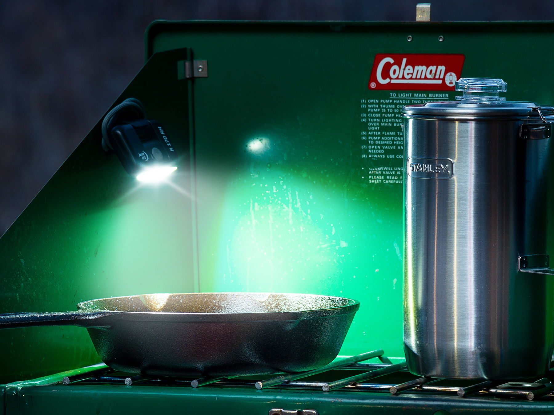 Die Lampe kann an dem eingebauten Magneten oder mit den integrierten Gear Tie's aufgehängt werden. Ein Gear Tie ist ein wiederverwendbares, flexibles Befestigungselement mit einem hochflexiblen Eisendraht im Inneren, das durch eine robuste Gummischicht geschützt wird, die auch zusätzlichen Halt bietet.