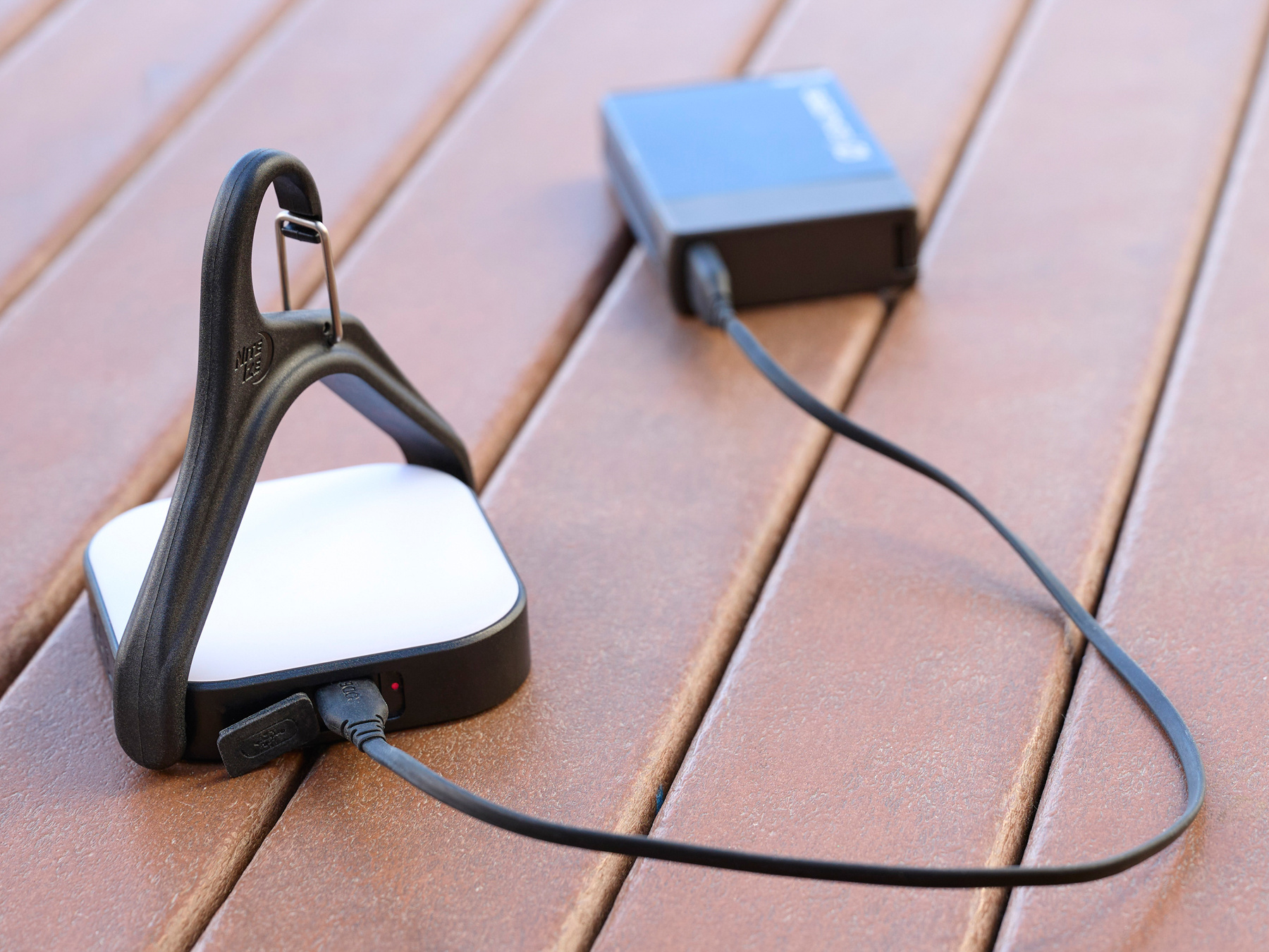 Die Verwendung der Nite Ize Radiant Revolve ist einfach. Zum Aufladen über die Sonne drehst du das Gehäuse so, dass das Solarpanel direktes Sonnenlicht einfängt. Zum Aufladen über USB-C verwenden Sie ein kompatibles Kabel (nicht im Lieferumfang enthalten). Mit dem drehbaren Gehäuse können Sie das Licht ganz einfach in die gewünschte Richtung lenken. Drücken Sie den Knopf, um die Laterne ein- und auszuschalten und zwischen verschiedenen Helligkeitsmodi und Farbtemperaturen zu wechseln. Mit dem Karabinerhaken lässt sich die Laterne leicht befestigen.