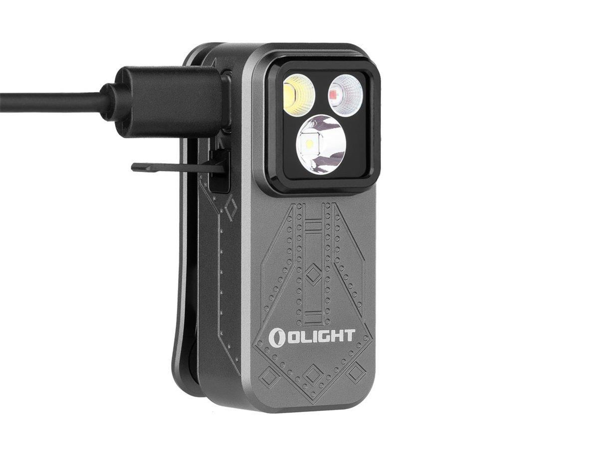 Diese Sonderausgabe der Oclip Pro ist ein Musterbeispiel für Funktionalität und Design. Die Lampe verfügt über drei verschiedene LEDs, die jeweils eine bestimmte Funktion erfüllen: