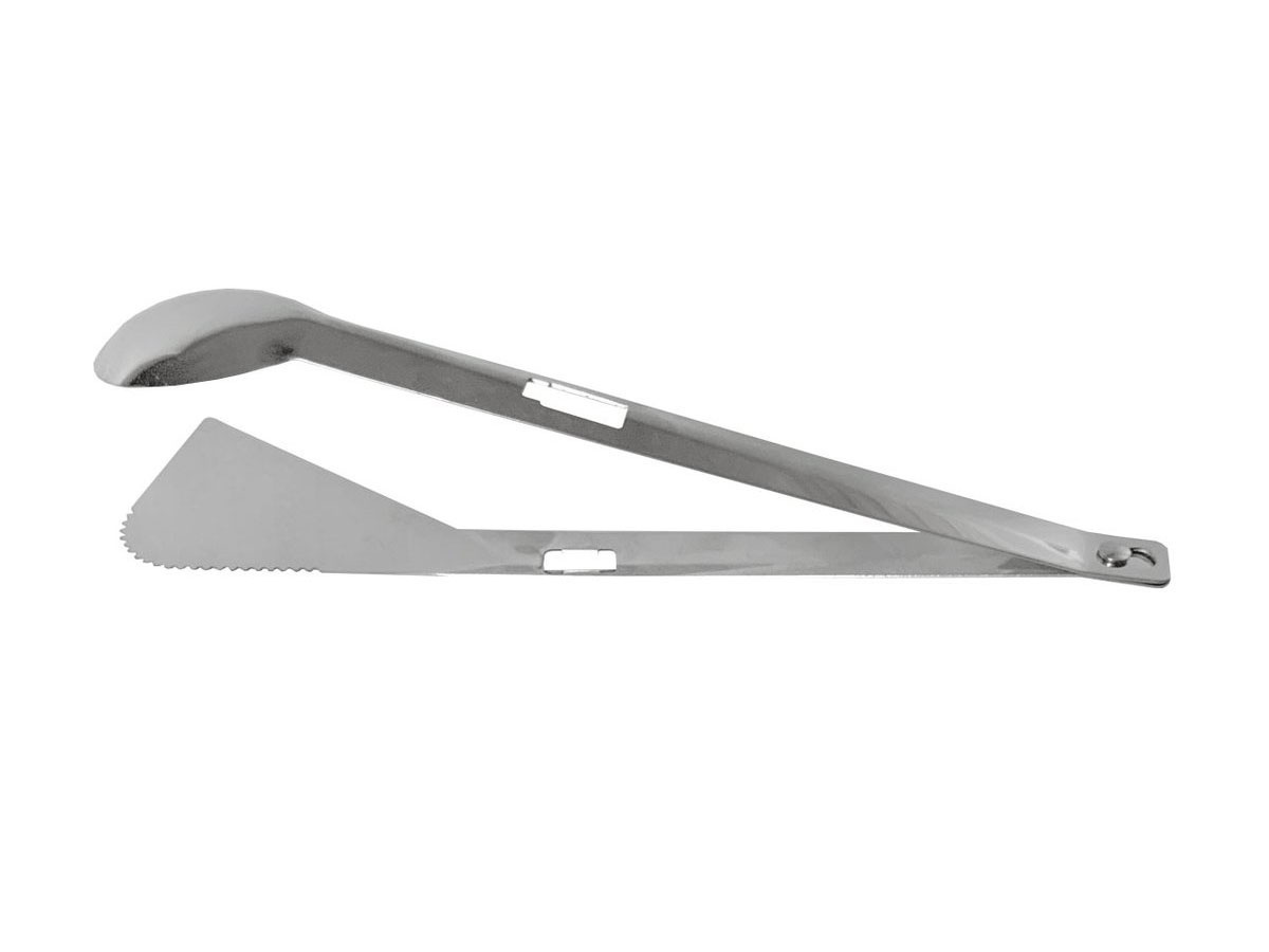 Die Pathfinder-Edelstahlzange ist ein multifunktionales Set, bestehend aus einem Göffel, einem Spatel mit Brotmesserfunktion und der Möglichkeit, diese zu einer Zange zu kombinieren. Sie ist aus langlebigem Edelstahl gefertigt, leicht zu reinigen und ideal für den Einsatz im Freien.