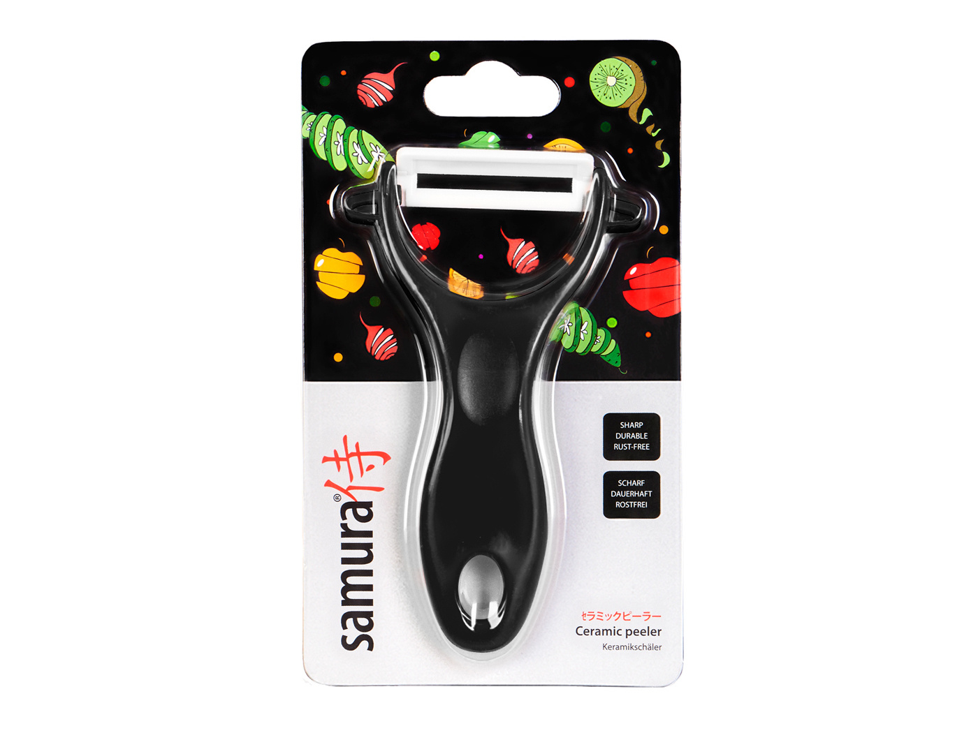 Keramikschäler /Aspegeschiller mit schwarzem Griff. < /p>