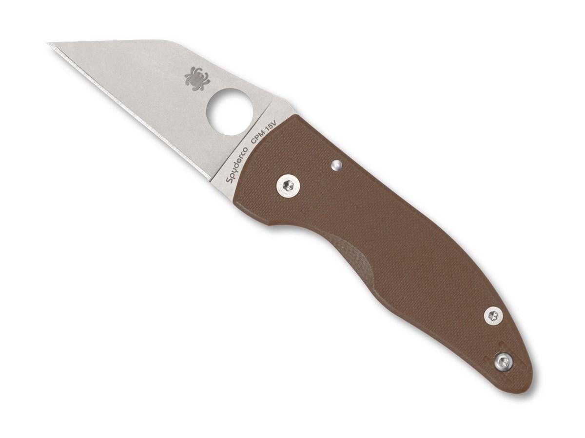 - Robuster G-10-Griff: Der Griff ist mit warmbraunen G10-Schalen versehen. Diese Farbe ist der traditionelle Farbton, den Spyderco für Modelle mit CPM 15V-Stahl reserviert. G10 ist ein starkes Verbundmaterial, das auch unter feuchten Bedingungen einen festen Griff gewährleistet.