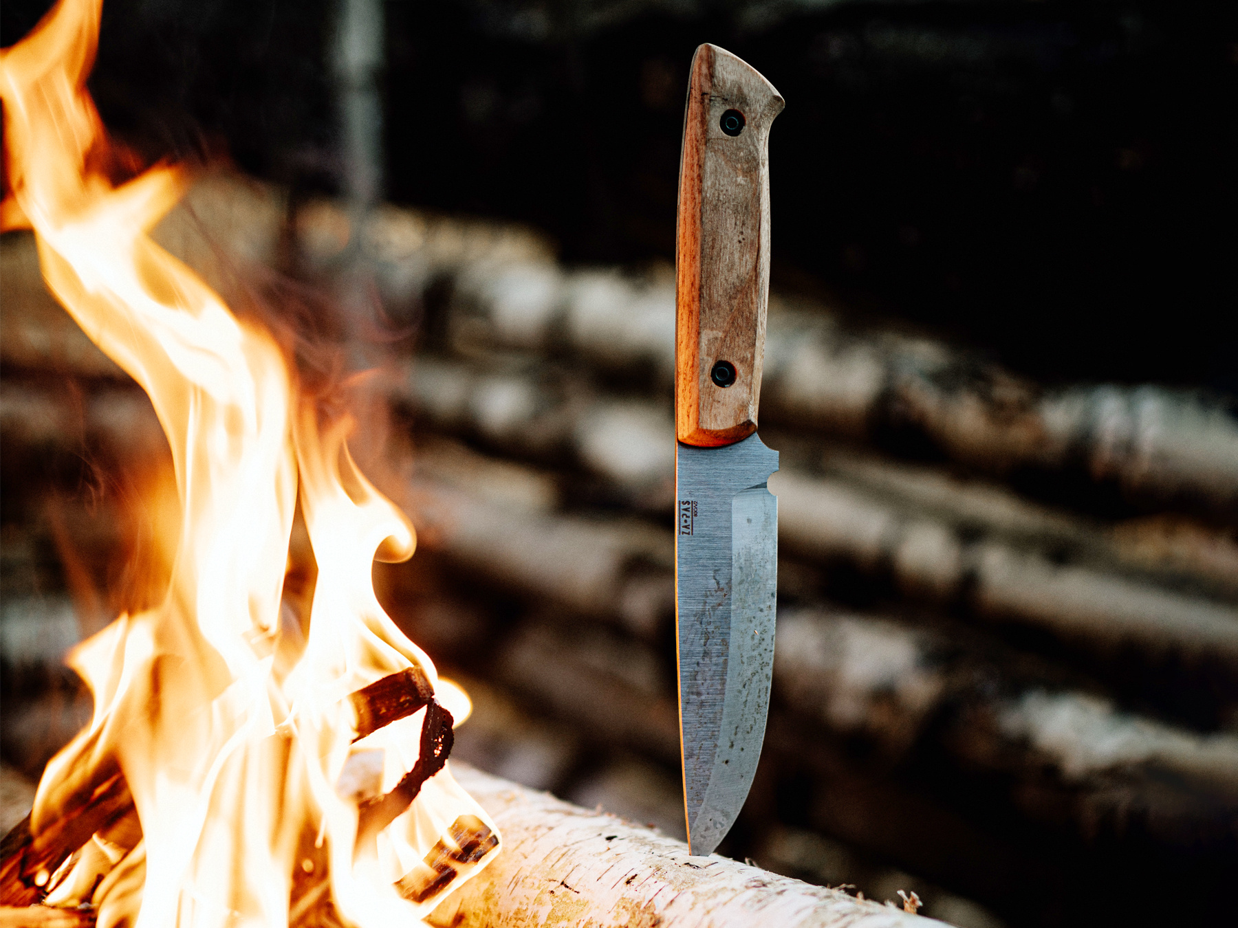 Außerdem ist der Klingenrücken flach geschliffen, so dass er sich gut für die Verwendung mit einem Feuerstahl eignet.