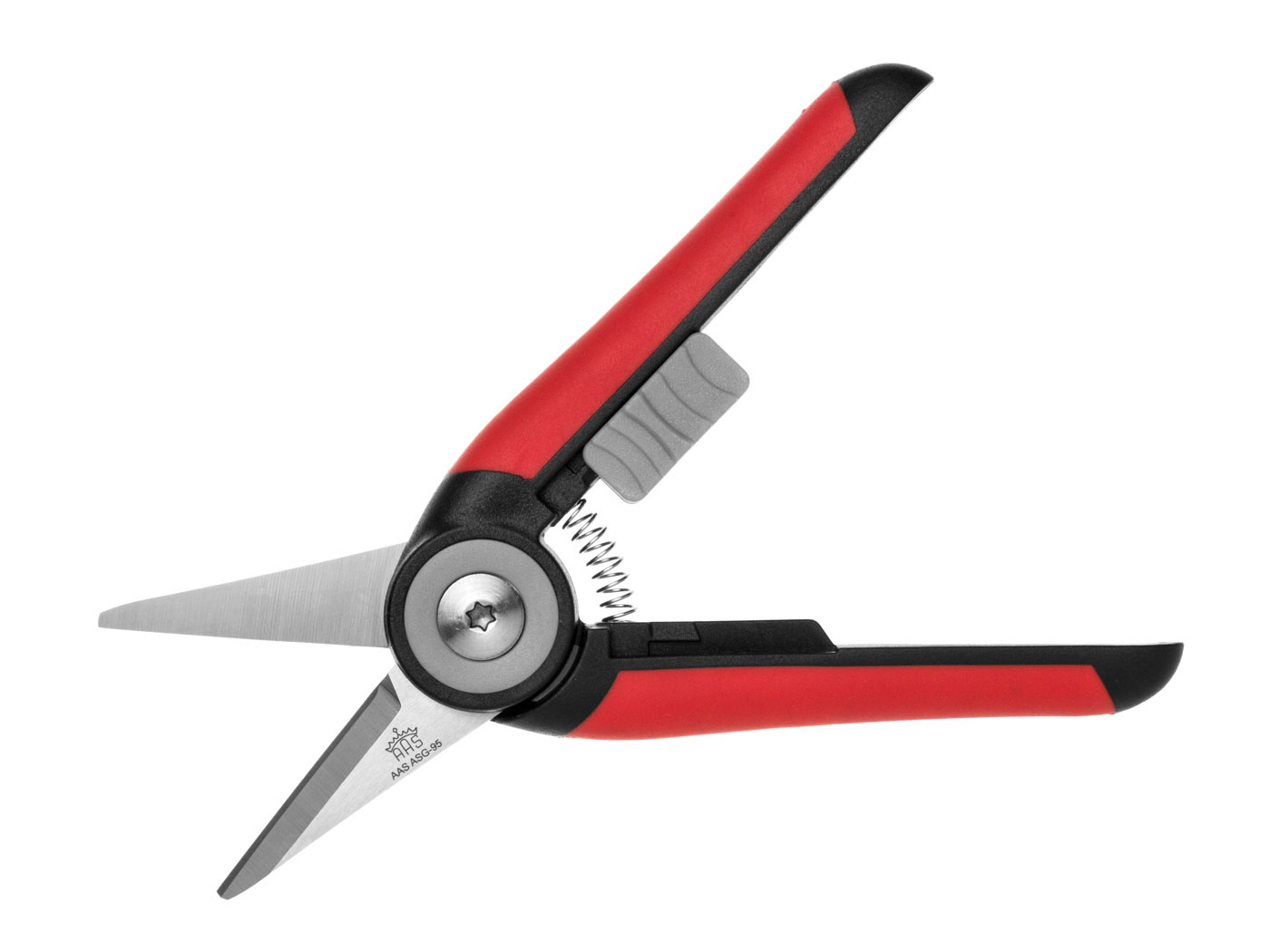 The biggest advantage of the MaxGrip harvesting shears is the precision of the cut thanks to the thin, precision-ground stainless steel blade. This is crucial for maintaining the health of sensitive plants during harvesting. The automatic spring reduces strain on the hand, which is a major advantage during long harvesting jobs. The ergonomic FRN/TPE grip ensures comfortable and controlled operation.