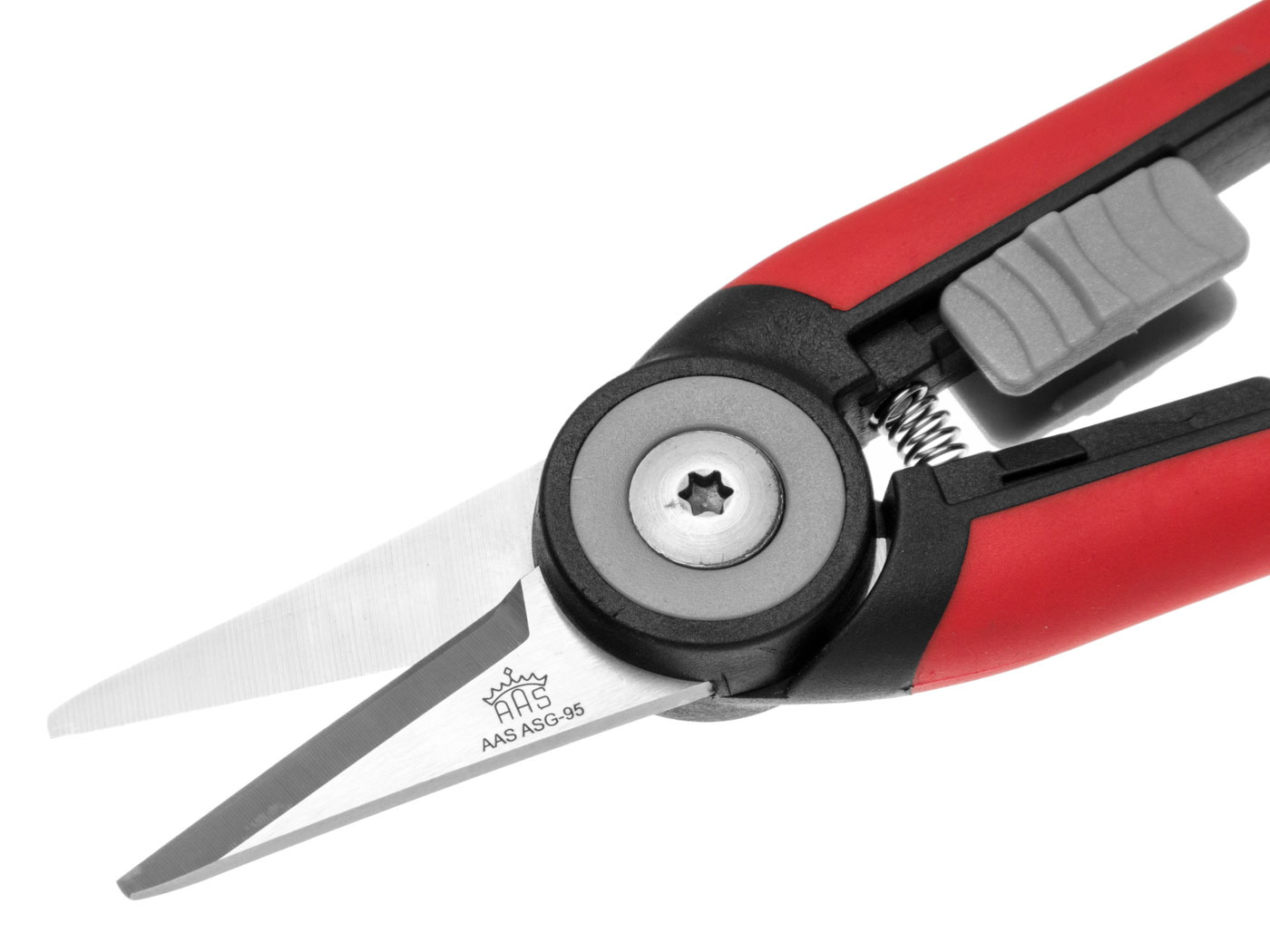 The A.A.S. MaxGrip Gardening Shears are excellent precision shears. The AISI 420 stainless steel blade and automatic spring ensure a clean, effortless cut and reduced hand fatigue. The ergonomic FRN/TPE handles and safety lock guarantee performance, durability, and everyday reliability.