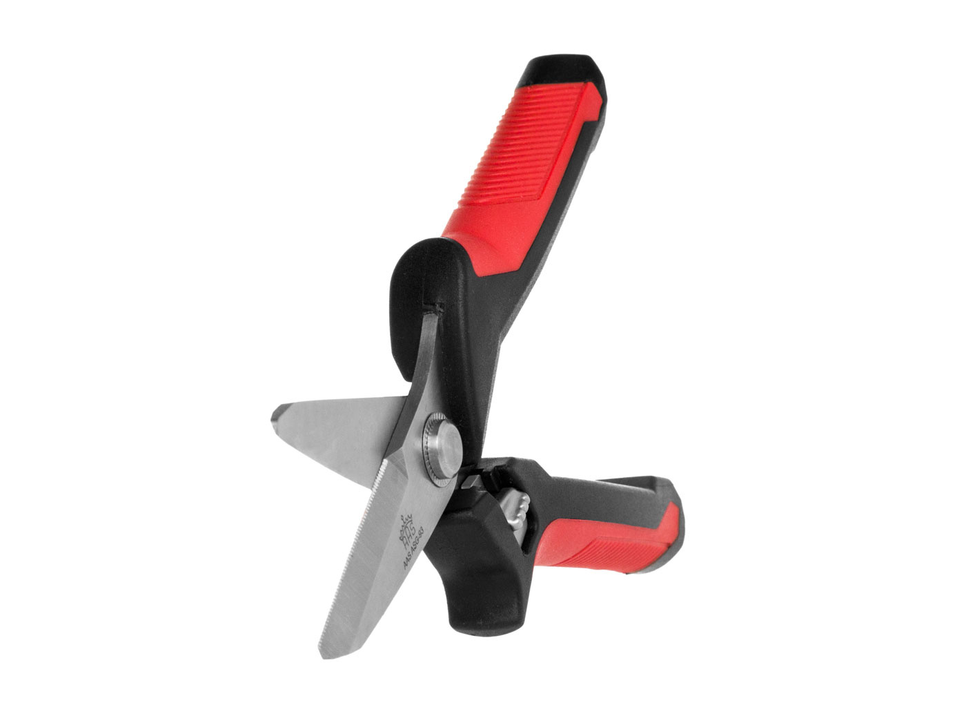 The A.A.S. MaxGrip Utility Shears are powerful and comfortable universal shears. The AISI 420 stainless steel blades, one of which is serrated, ensure a precise and effortless cut through various materials. The automatic spring mechanism and ergonomic TPE handles guarantee performance, durability, and everyday reliability.