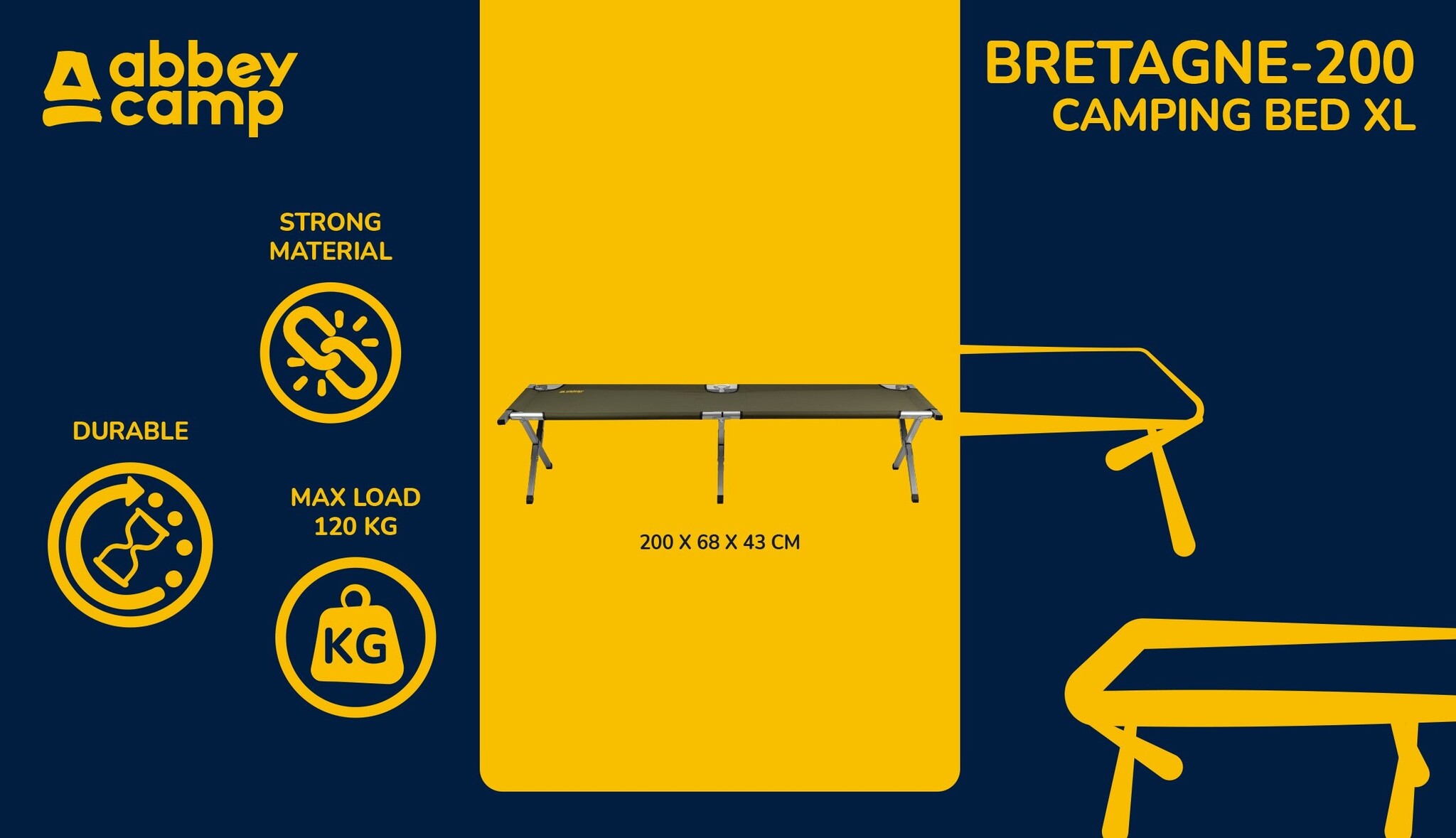 Abbey Camp® - Camping Bed Deluxe • XL • BRETAGNE-200 • Army Green