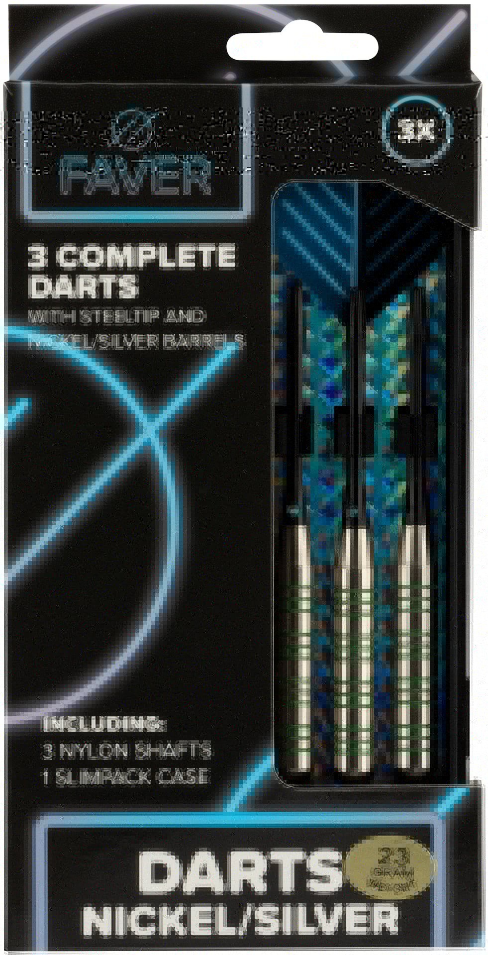 Description Faver® - Darts Nickel/Silver • METALIC • Blue/Black