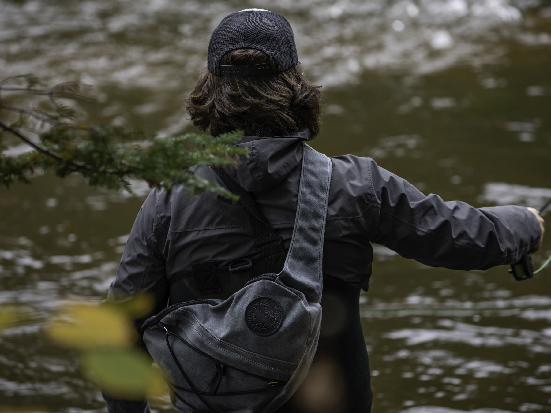 The Duluth Slingpack is a rugged and versatile backpack made of waxed canvas and leather, with a 16-liter capacity, several pockets and an adjustable carry strap. Treated with a water- and dirt-resistant coating, it is ideal for everyday use and outdoor activities.
