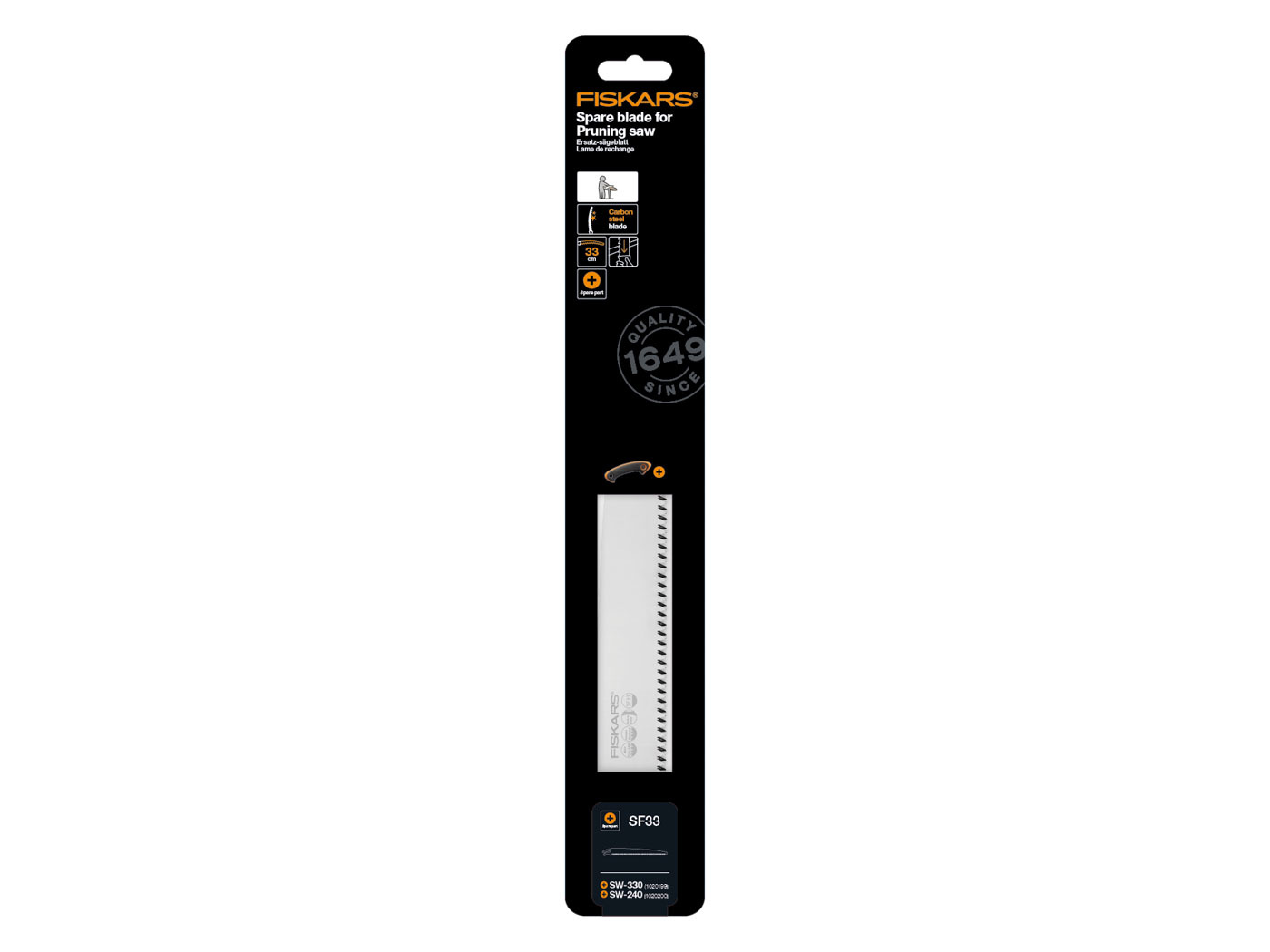 The Fiskars SF33 Saw Blade is a high-quality replacement saw blade, specifically designed for the SW 330 and SW 240 hand saws. This blade combines accuracy with durability, making it a cost-effective solution for maintaining your pruning saw.