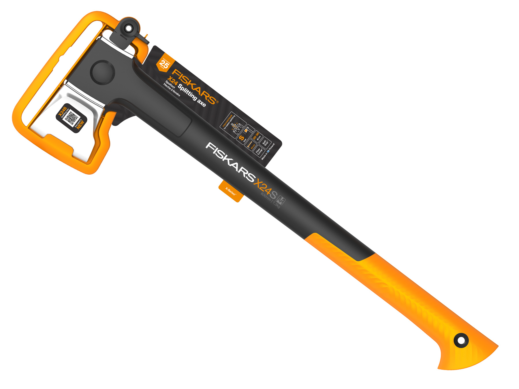 The Fiskars X24 Splitting Axe S is a powerful and efficient axe designed specifically for splitting small to medium-sized tree trunks. The masterful balance, integrated splitting wedge, shock-absorbing handle and convenient sheath make this a top choice for home use and outdoor activities.