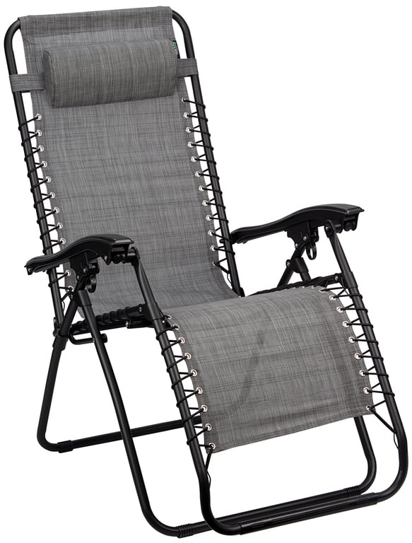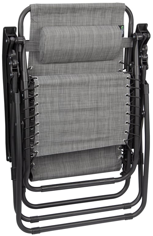 The frame is made of steel with a matte black coating and polyamide connecting pieces. The padded melange textilene cloth is reinforced and attached to the frame with tough elastic cords.