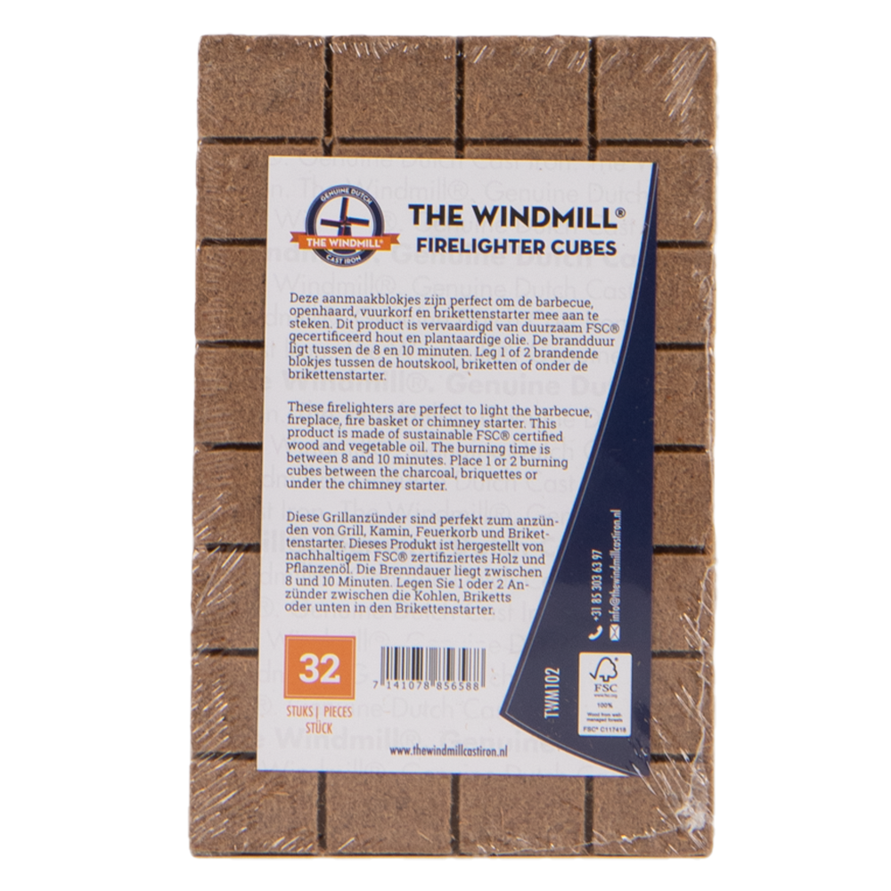 The Windmill Fire Starters are the ideal way to quickly and safely light your barbecue, stove, fireplace, or fire pit. These cubes are made from FSC-certified wood and burn cleanly and efficiently.