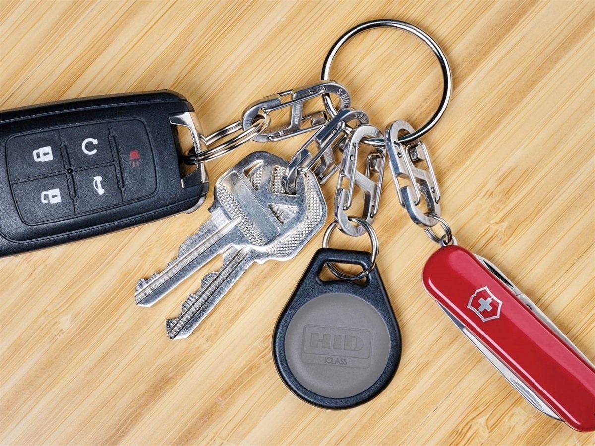 - Keyring: Attach your keys, key rings, or fobs to your belt loop, belt, or bag.