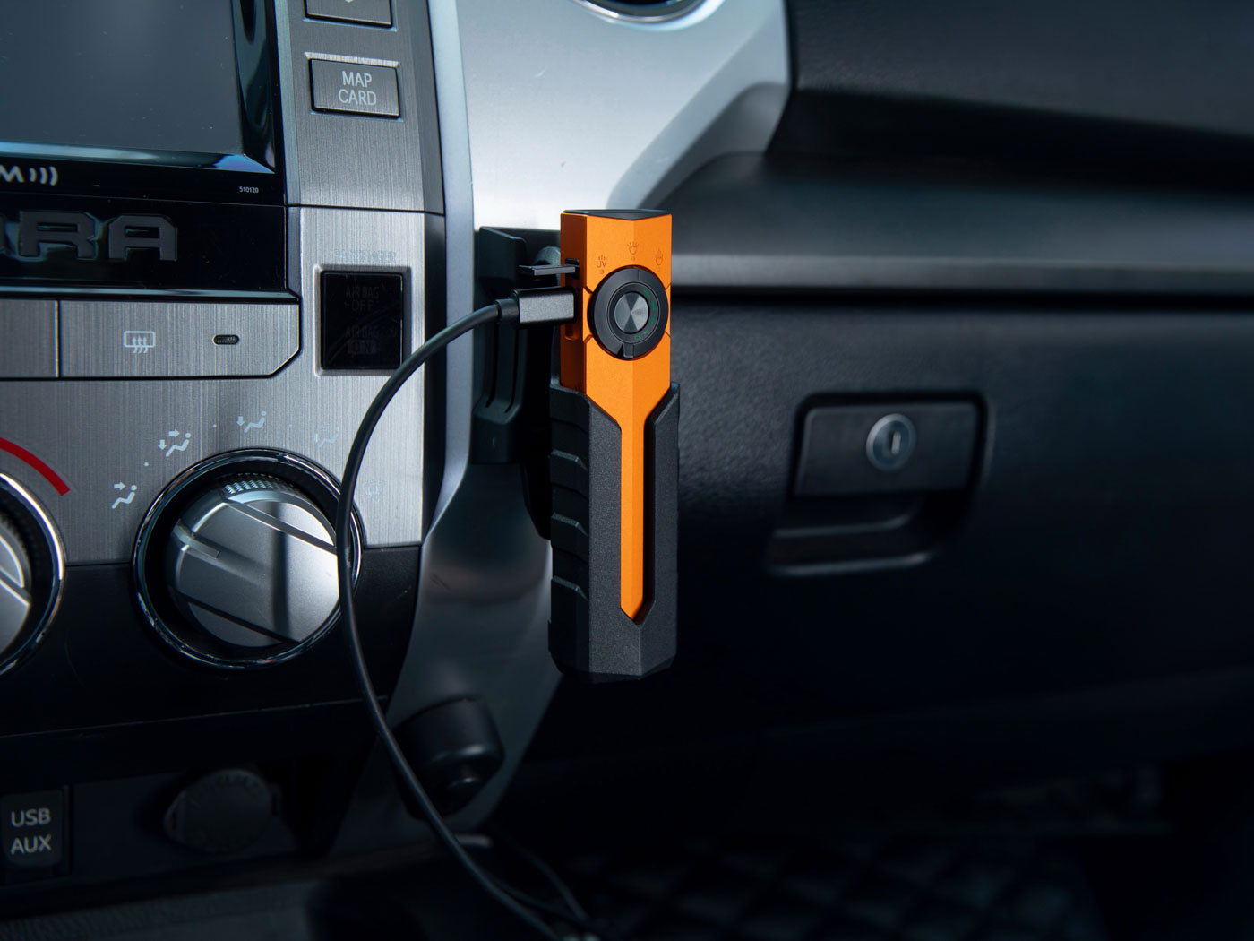 The biggest advantage of this product is the flexibility to use the holster both mobile and fixed. The belt attachment ensures that the flashlight remains quickly accessible during outdoor activities. The addition of the 3M adhesive strips is a crucial advantage for users who want to create a fixed storage location for their ArkPro, for example in a vehicle or workshop. The compartment for the charging cable is a handy detail for organization.