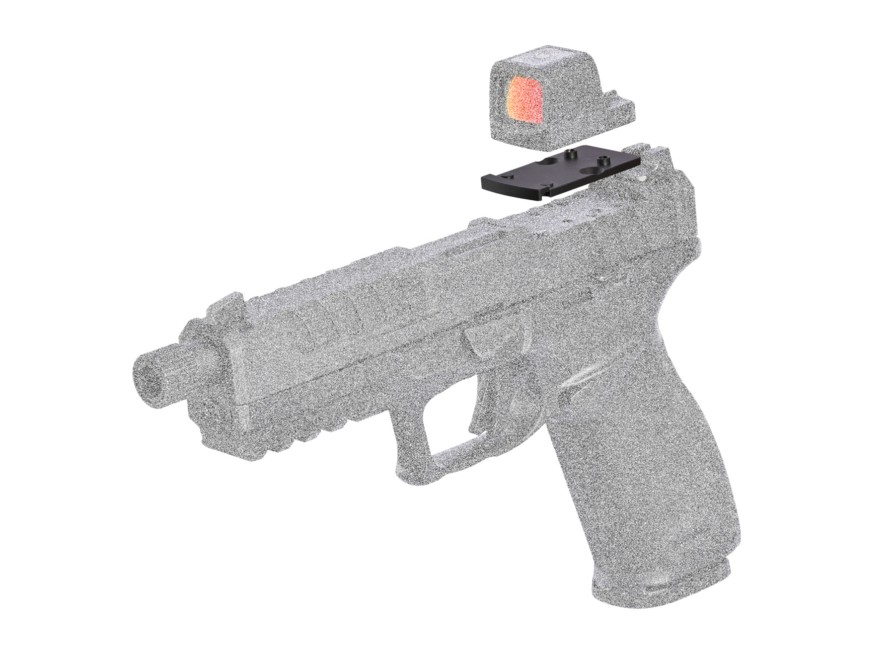 - Mounting Red Dot Sight: Place your RMSc-compatible red dot sight (e.g. Osight S, 407K, 507K, EPS Carry) on the adapter plate. Attach the red dot sight using the appropriate supplied screws for the optic and tighten according to the red dot manufacturer's specifications.