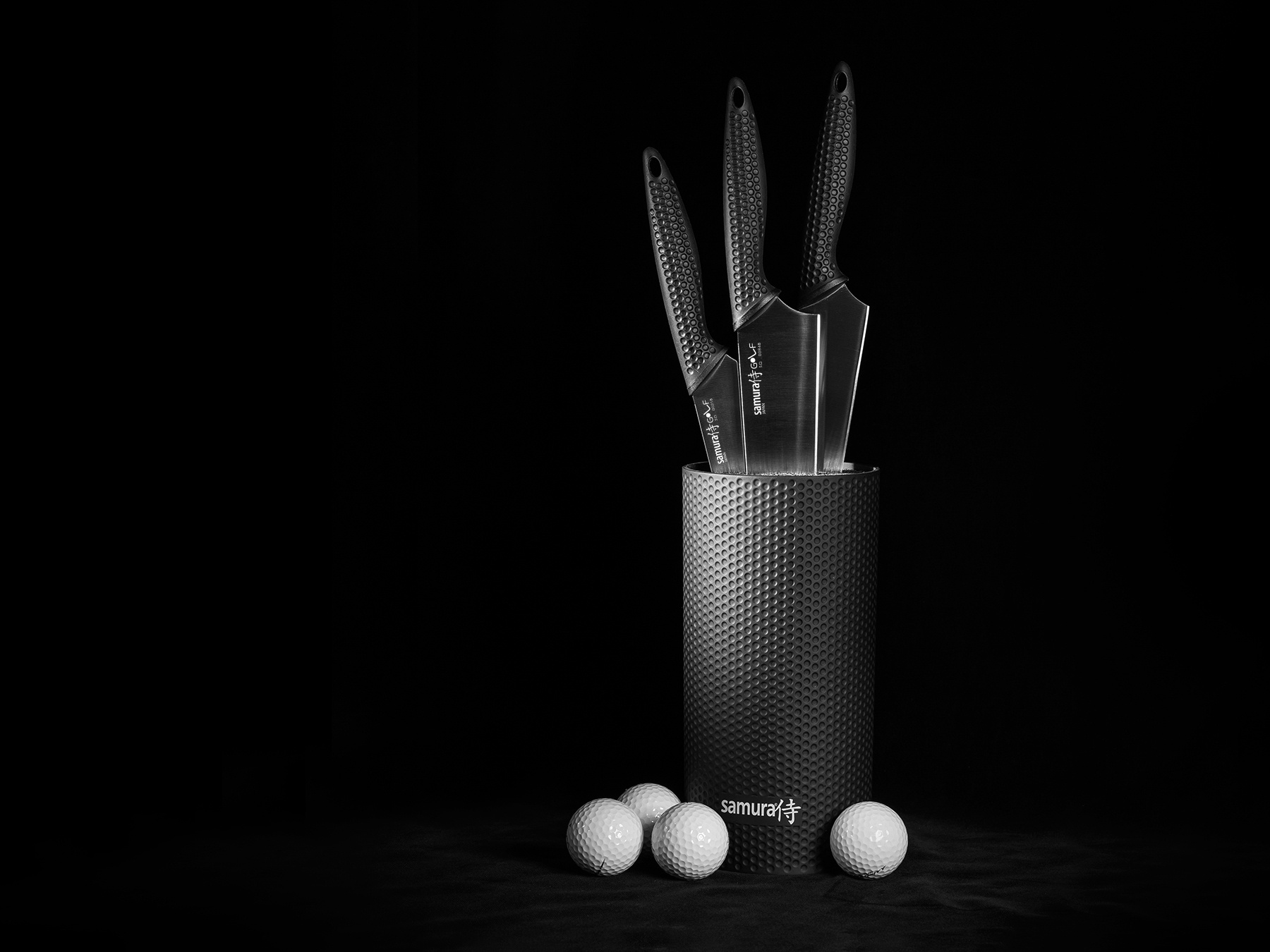 The Samura Golf is a set of four professional kitchen knives with non-slip handles.