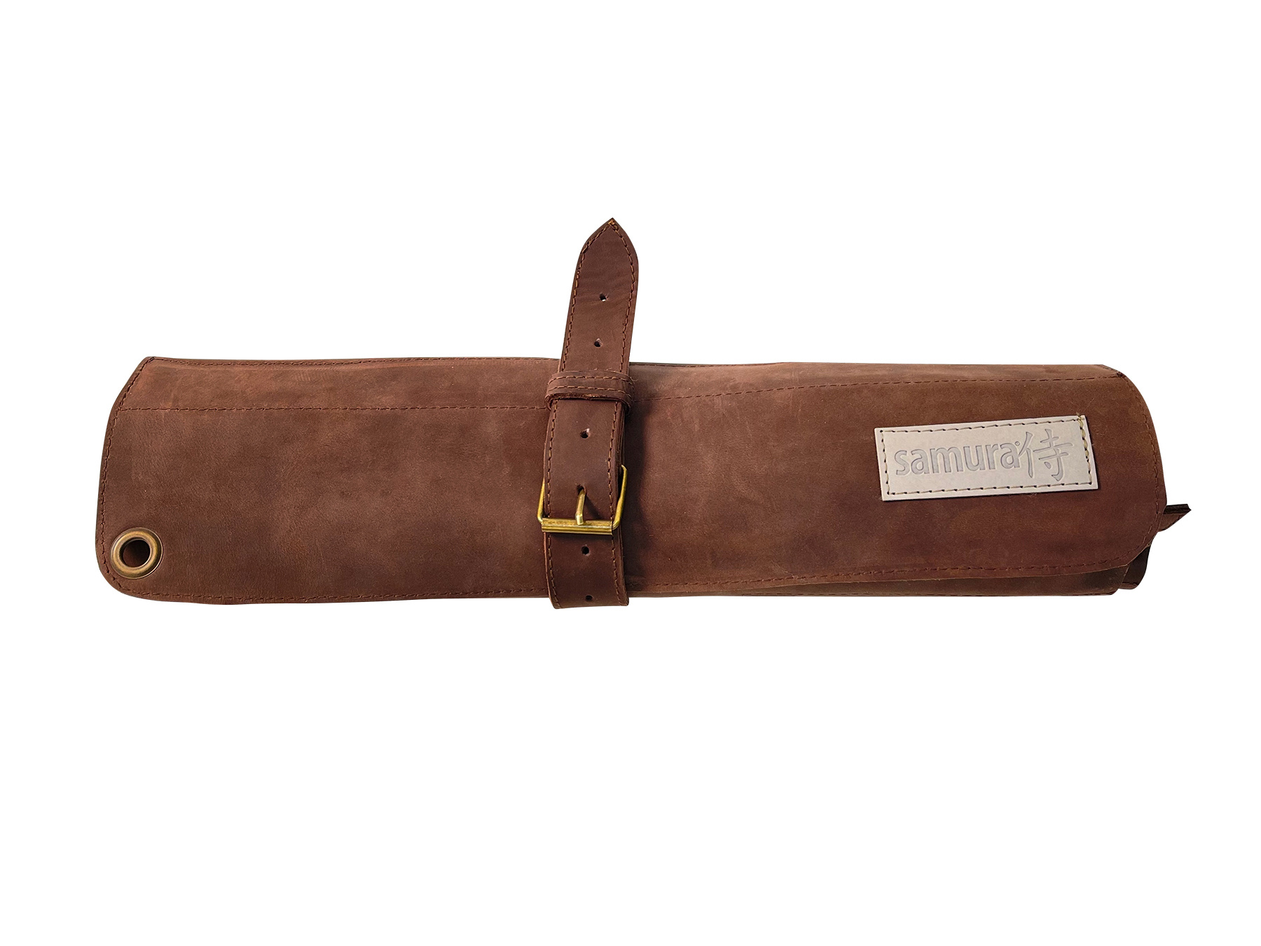 The Samura leather rolling bag is made to easily carry your knives anywhere.