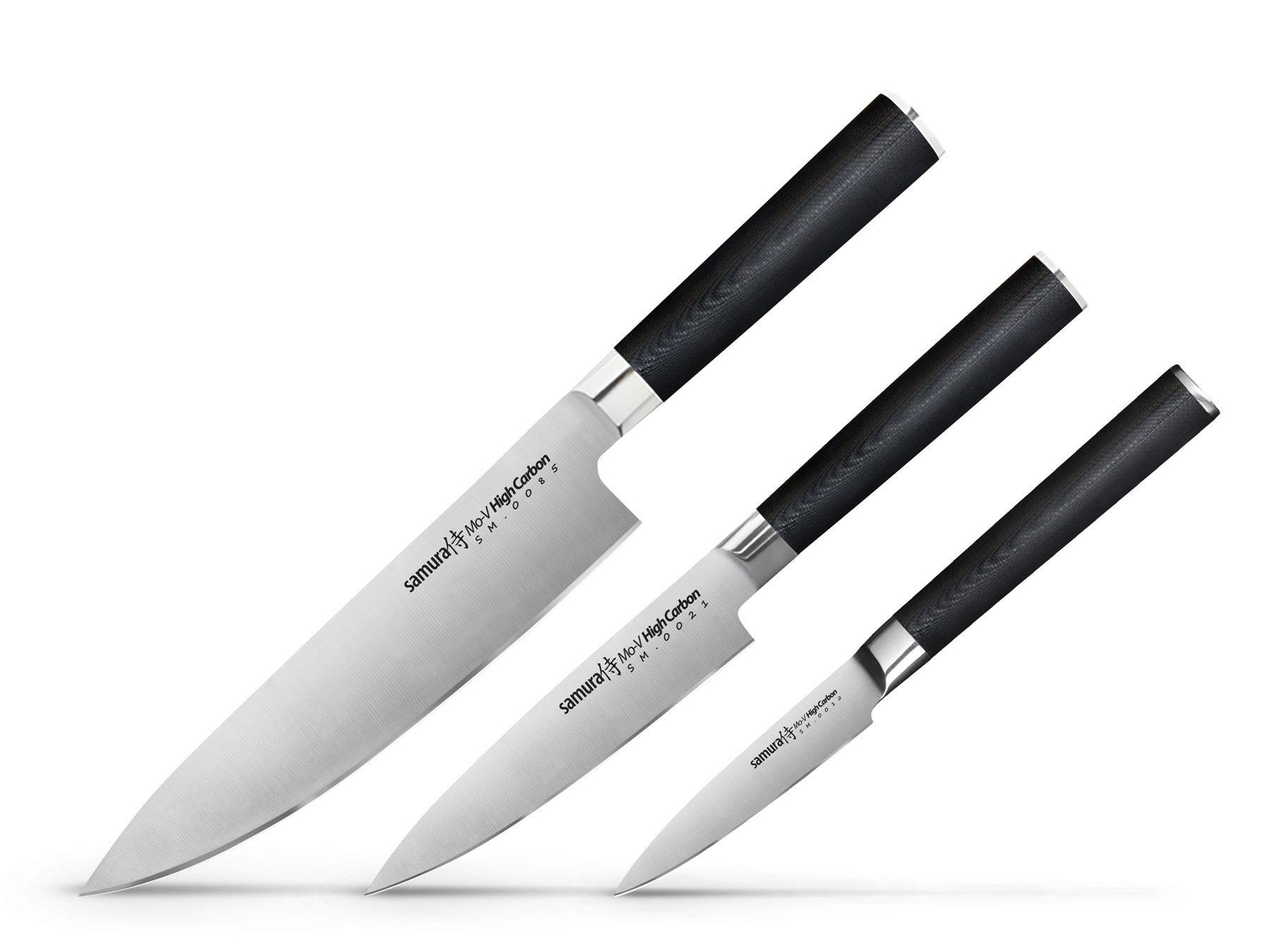 The Samura Mo-V is a beautiful set of 3 kitchen knives suitable for professional use.