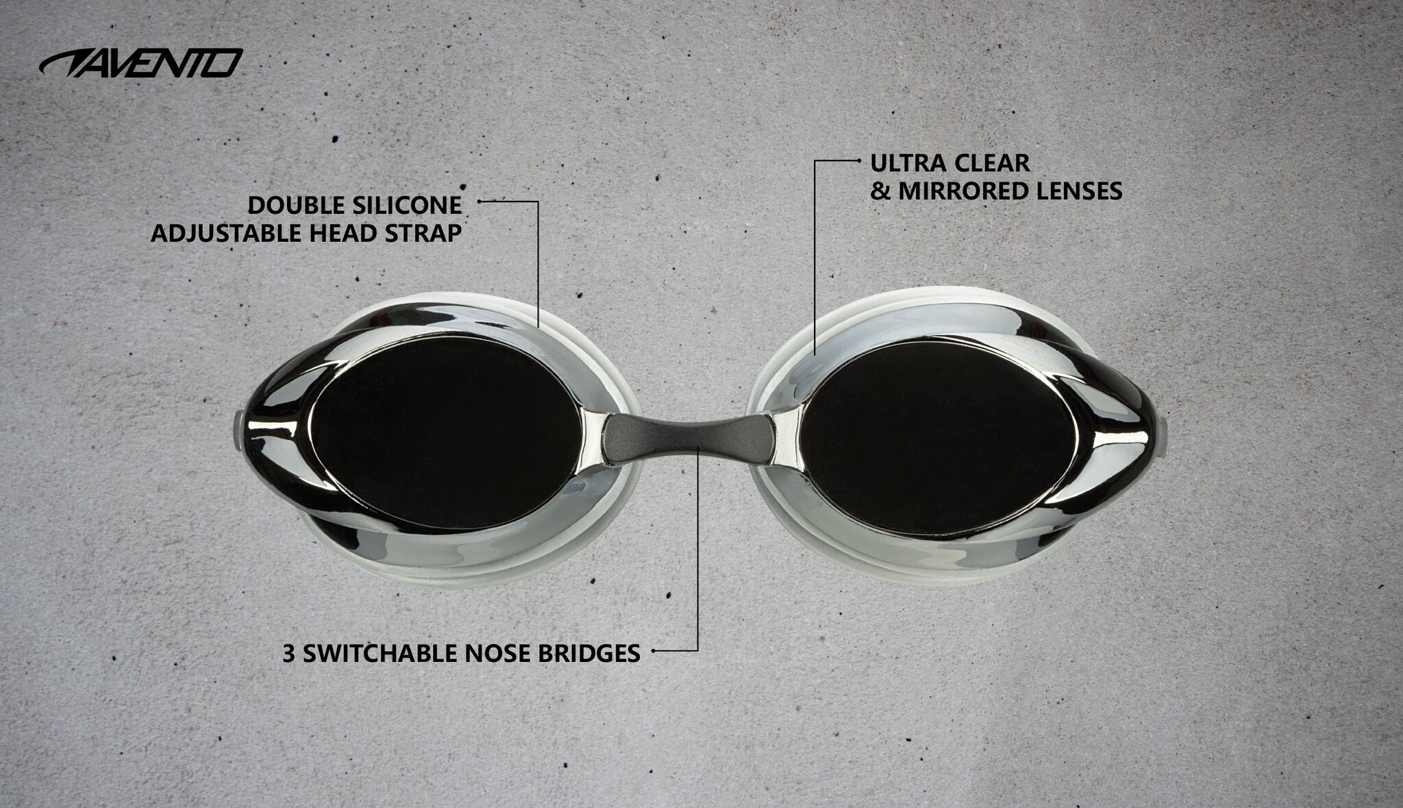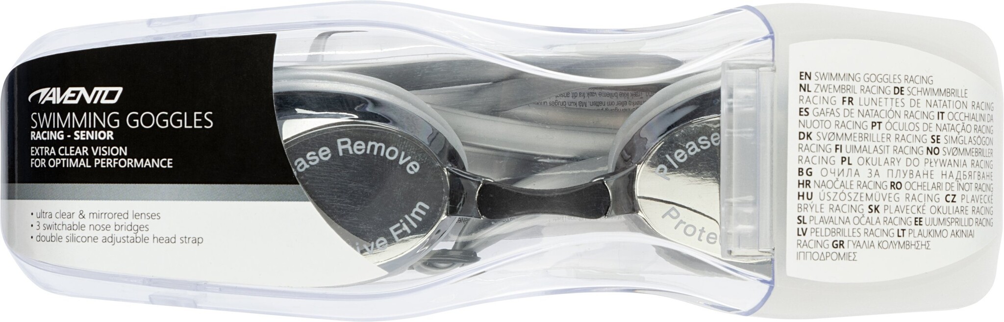 Description Avento - Swimming goggles Racing • SENIOR • Silver