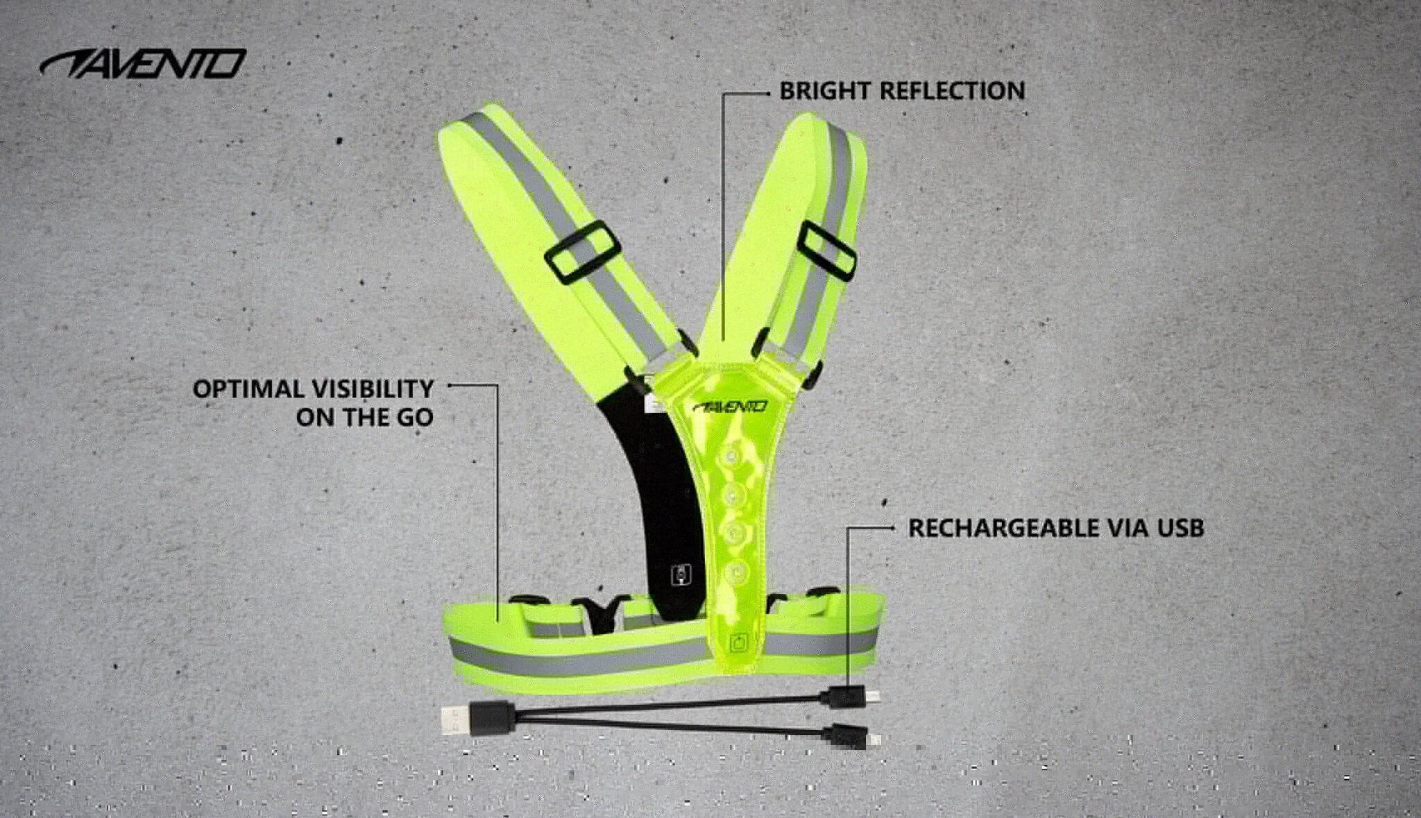 Ce gilet de sécurité sportif avec Avento LED vous rend parfaitement visible dans l'obscurité pour les autres usagers de la route.