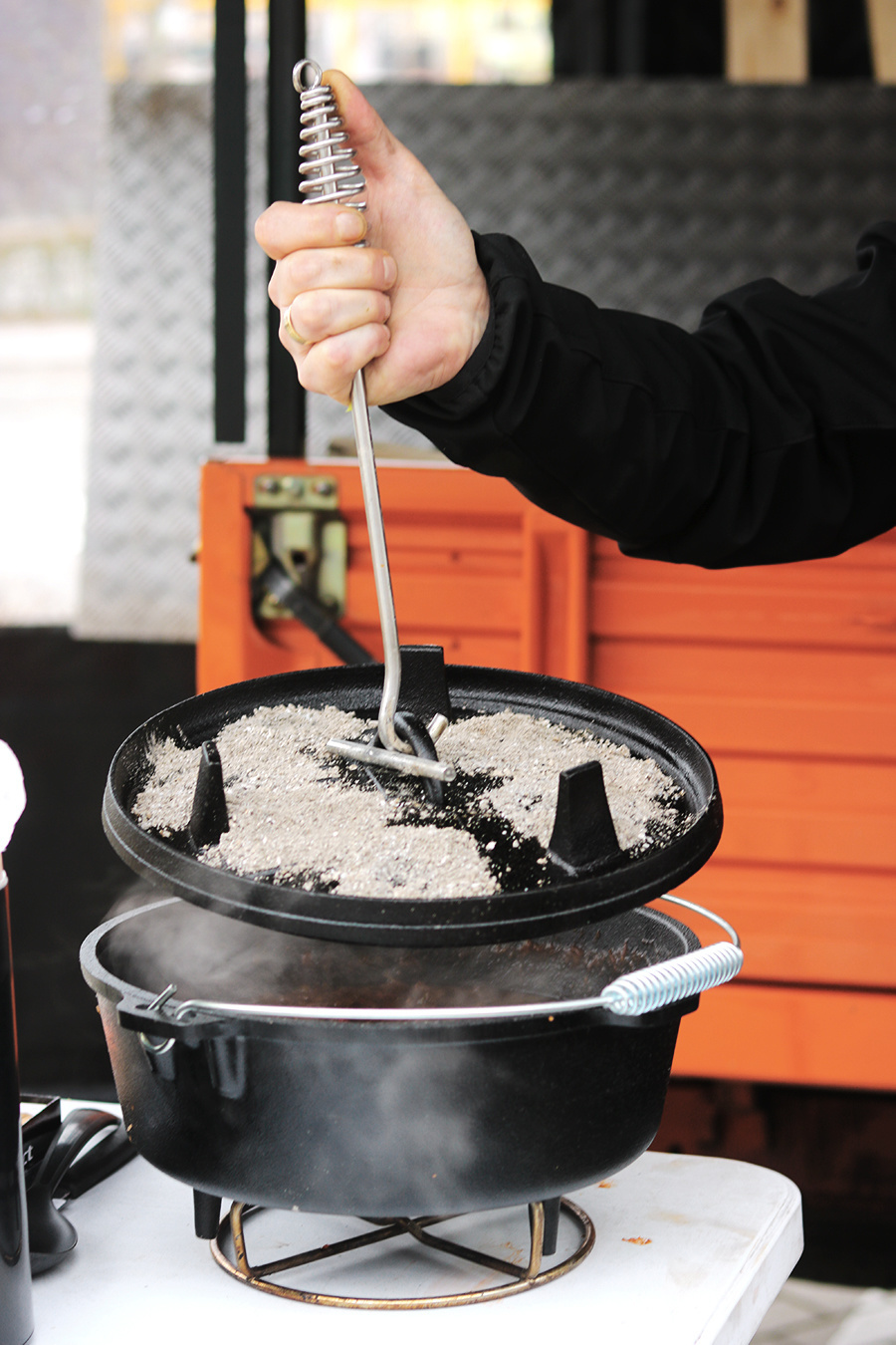 En plus de soulever le couvercle, vous pouvez également utiliser le lève-couvercle The Windmill comme une pelle à cendres. Ainsi, vous gardez votre surface de cuisson propre et bien rangée pendant la cuisson.