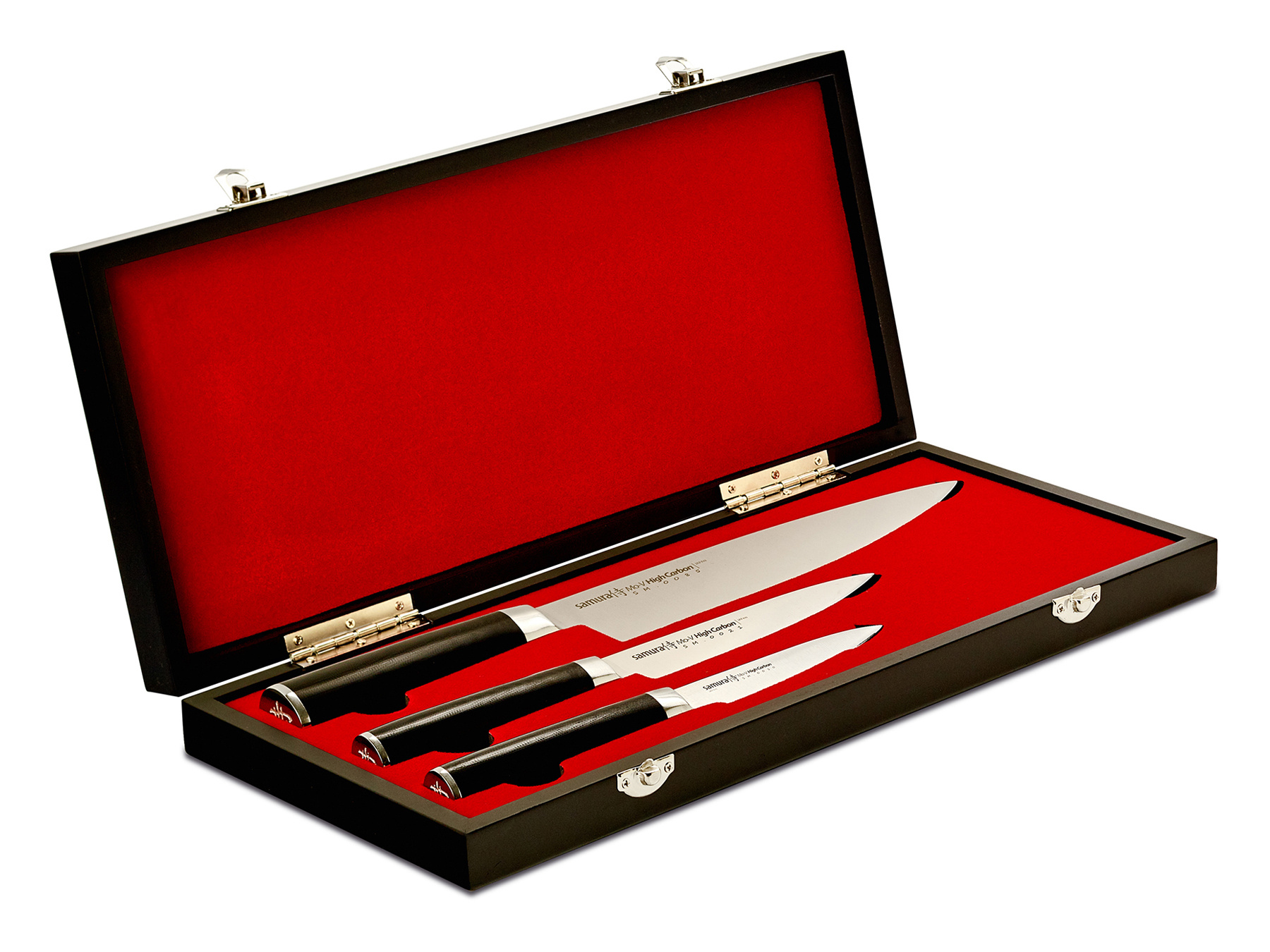 Le Samura Mo-V est un magnifique ensemble de 3 couteaux de cuisine convenant à un usage professionnel.