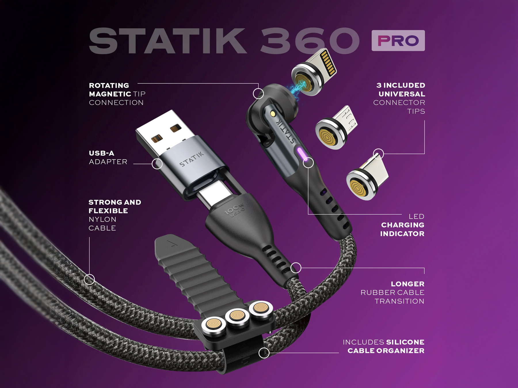 Statik 360 Pro Magnetic USB-C Cable 1m - 100W + Adaptateur