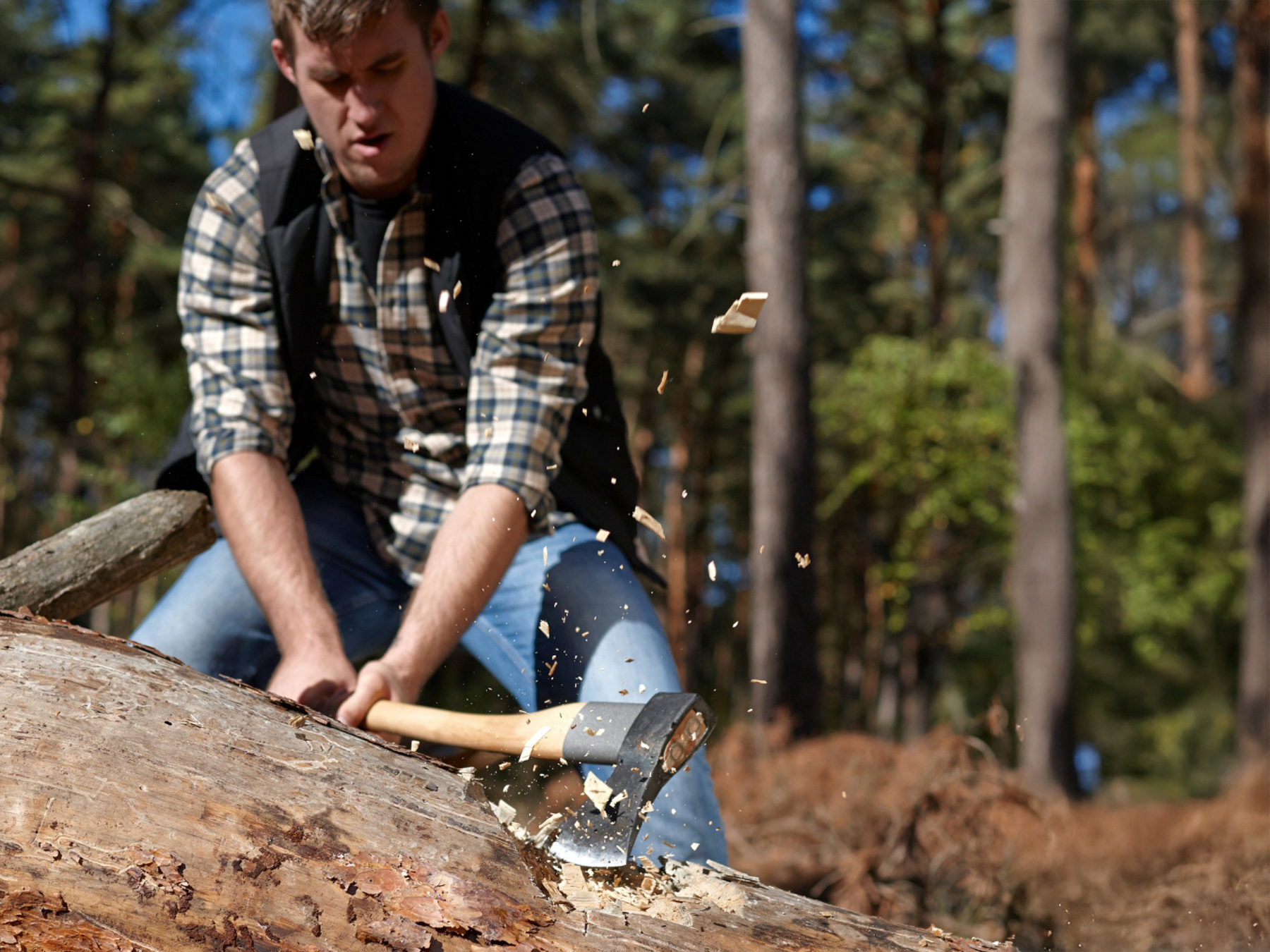 Voor het hakken van hout houdt u de steel stevig vast met beide handen en zwaait u de bijl met een gecontroleerde beweging naar het hout. Laat het gewicht van de bijl en de scherpte van het blad het werk doen. Voor het vellen van kleinere bomen maakt u inkepingen aan beide zijden van de stam, waarbij u ervoor zorgt dat de inkepingen elkaar overlappen. Werk altijd met de juiste veiligheidsmaatregelen en zorg voor een stabiele ondergrond.