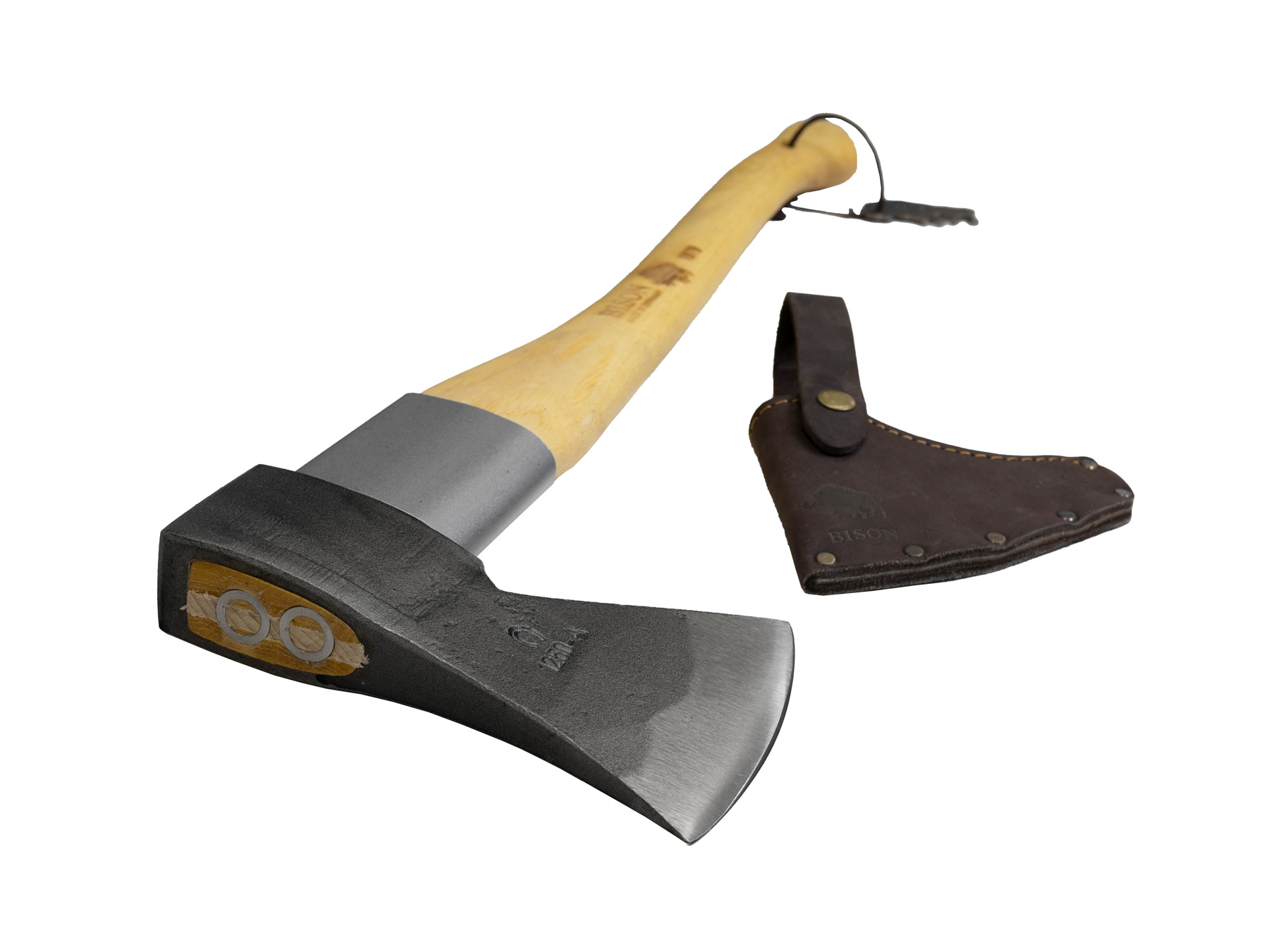 De Bison 1879 Universeelbijl is een handgesmede bijl van premium kwaliteit, vervaardigd volgens traditionele methoden met hoogwaardige materialen. De zorgvuldig gesmede kop, het sterke hickoryhouten handvat met stalen huls en de meegeleverde leren schede maken het een duurzaam, betrouwbaar en stijlvol gereedschap voor diverse werkzaamheden in bos en tuin.