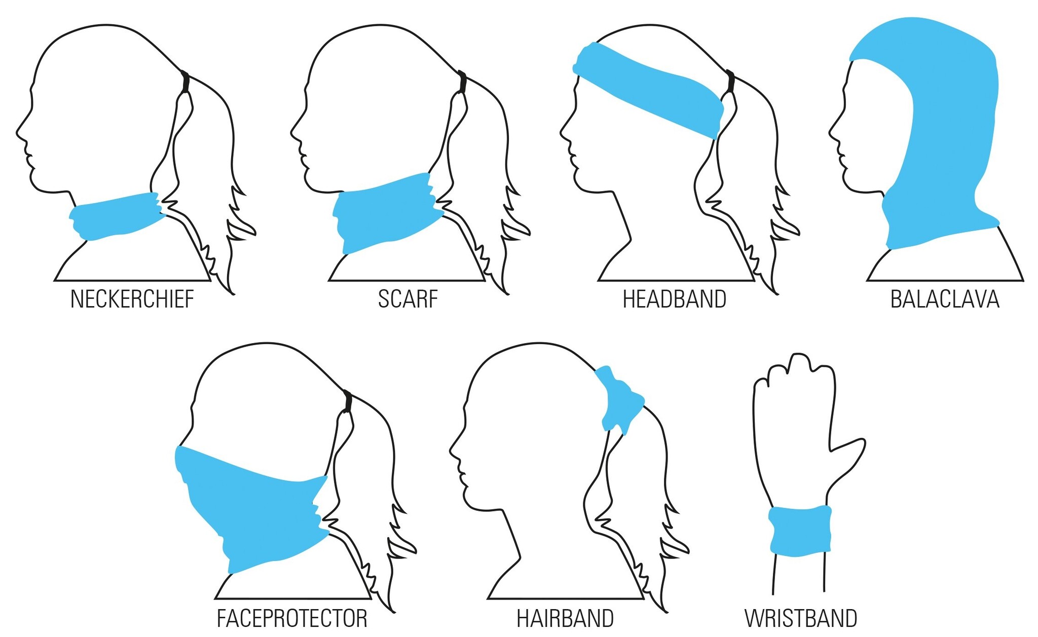 • op diverse manieren te dragen; sjaal, bandana, muts enz.