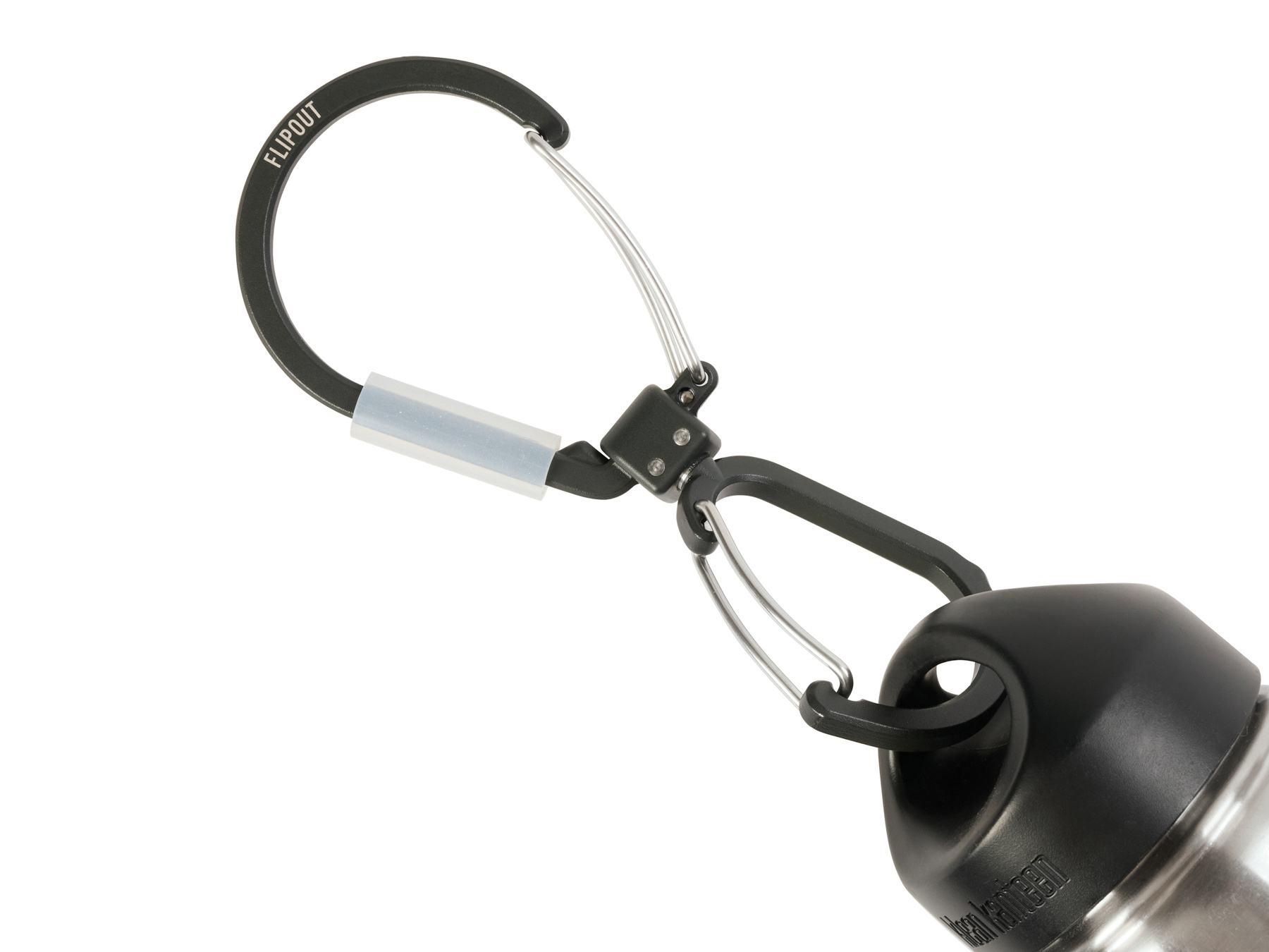 Houd één kant van de FlipOut stevig vastgeklemd aan uw tas, riemlus of een ander bevestigingspunt, terwijl de andere kant vrij hangt om de gewenste spullen vast te pakken. De dubbele roestvrijstalen geveerde openingen maken het eenvoudig om bagage, rugzakuitrusting, sportartikelen en talloze andere items met elkaar te verbinden. Een uniek voordeel is dat u de dubbele karabijnhaken ook in elkaar kunt schuiven en als een enkele, compacte haak kunt gebruiken wanneer de dubbele functie niet nodig is.