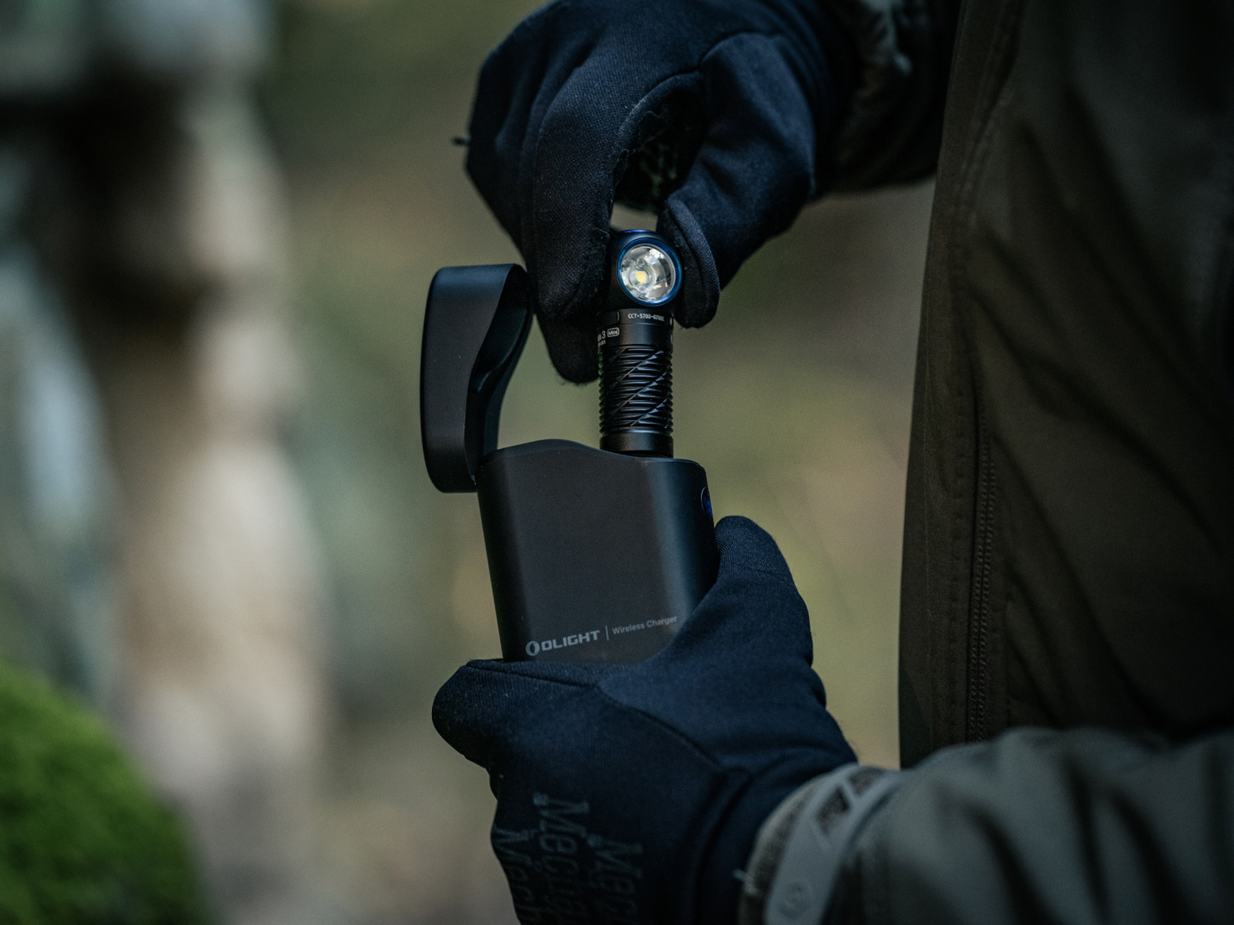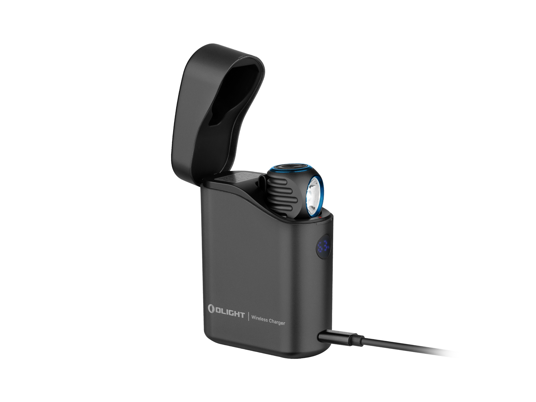 - Digitale Batterij-indicator en Bediening op Oplaadcase: De oplaadcase is voorzien van een digitale bedieningsknop die niet alleen het batterijpercentage van de case en de lamp toont, maar je ook in staat stelt de lamp rechtstreeks te bedienen of traploos te dimmen, zelfs tijdens het opladen. De oplaadcase is bovendien compatibel met meerdere Olight-modellen zoals de Baton 4 en Perun Mini-reeks, wat het een veelzijdig accessoire maakt.