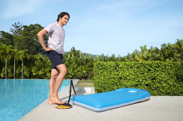 Deze voetpomp is ideaal voor kampeerders, zwembadeigenaren en iedereen die een snelle, efficiënte en universele luchtpomp nodig heeft voor luchtbedden, opblaasboten, opblaaszwembaden en andere opblaasartikelen.