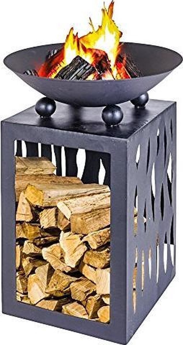 Vuurschaal 45 cm met Houtopslag voor Brandhout (Zwart) – Sfeer en Warmte met Stijl